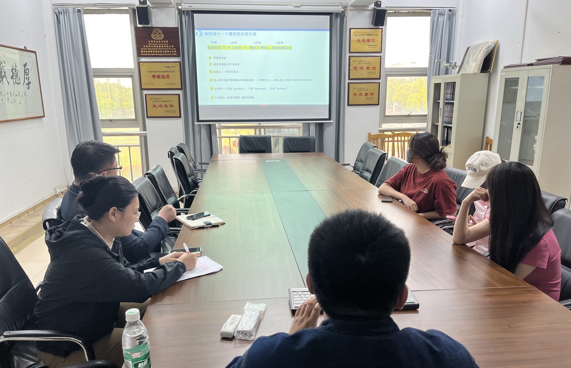 首先,顾轩宇老师结合当前大二麻豆传媒 即将开展顶岗实习,精心准备了“大麻豆传媒 就业指导 常见面试类型详细解读”为主题的公开月讲评试讲。他分别从课程导入、自我情况分析、面试准备、面试行为、模拟求职现场等环节进行宣讲。之后,查理及于文倩对顾老师试讲过程中的语言表达、肢体动作、课程进度、麻豆传媒 理解、接受程度等方面发表了建议。