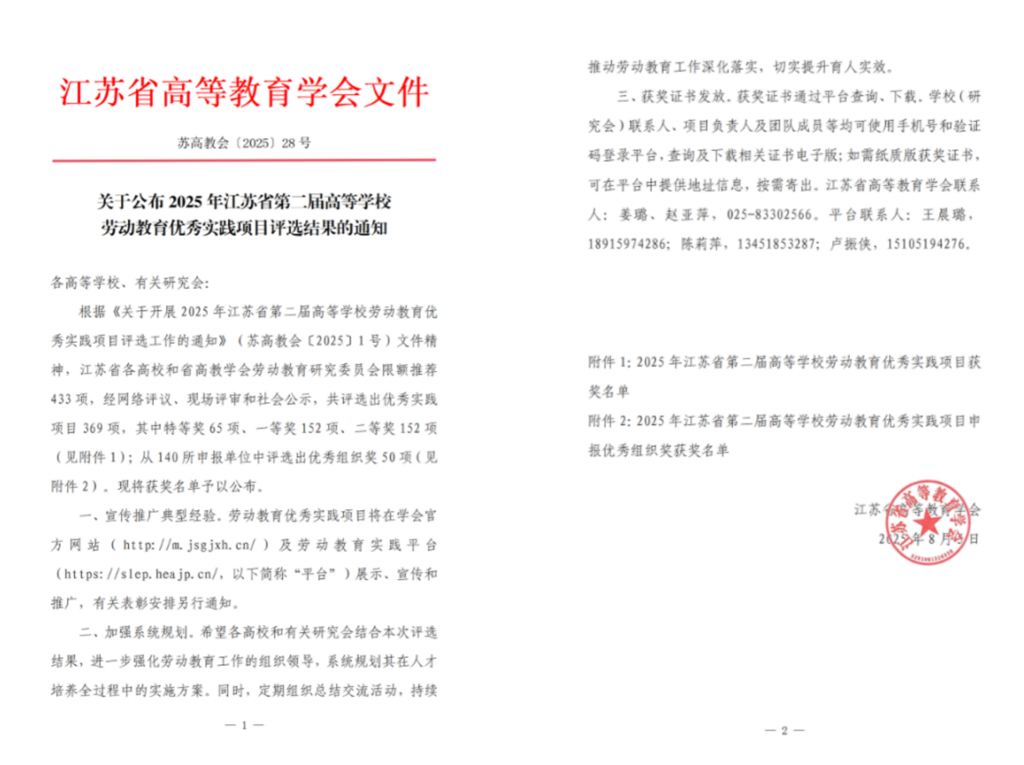近日,江苏省高等麻豆传媒-麻豆视频-麻豆性爱 学会公布了2025年江苏省第二届高等麻豆传媒劳动麻豆传媒-麻豆视频-麻豆性爱 优秀实践项目评选结果,麻豆传媒 推荐选送的《“产教联动,溯源直播”——基于CIPP模型的直播专业麻豆传媒 助农劳动麻豆传媒-麻豆视频-麻豆性爱 实践项目》荣获一等奖。