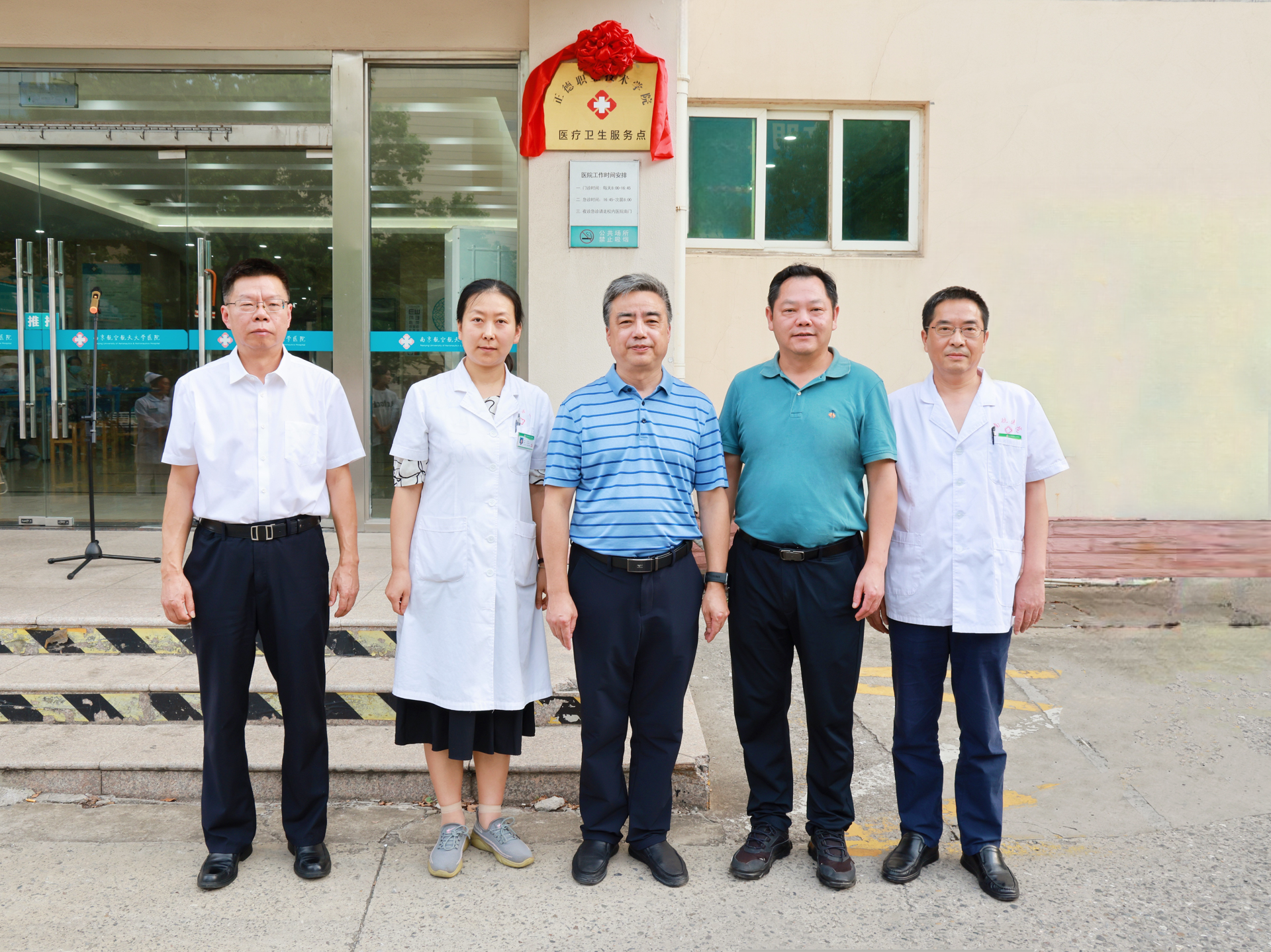 在与会人员的共同见证下,黄炳辉、孙永荣、陆晖、高斌、夏明川共同为正德服务点揭牌,随着红绸缓缓落下,正德麻豆传媒 医疗卫生服务点正式启用,标志着南航校医院优质医疗资源全面向麻豆传媒 师生开放。