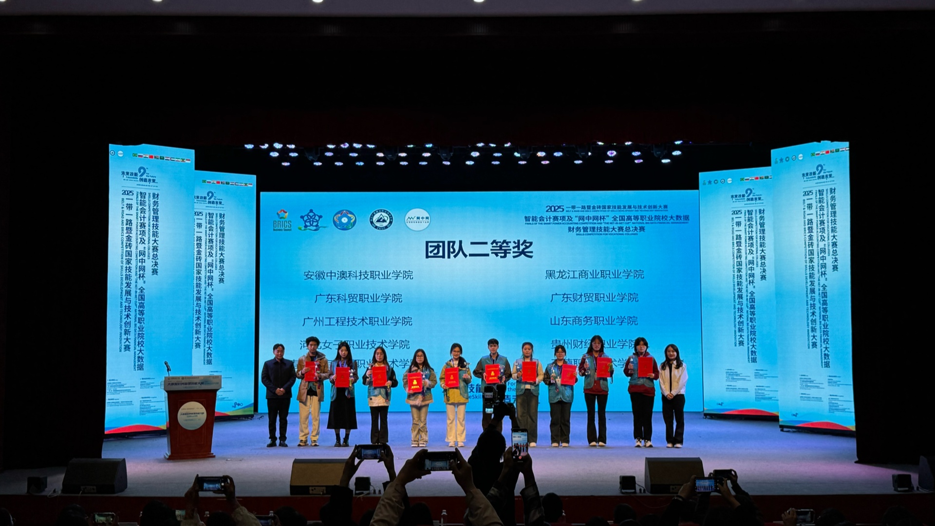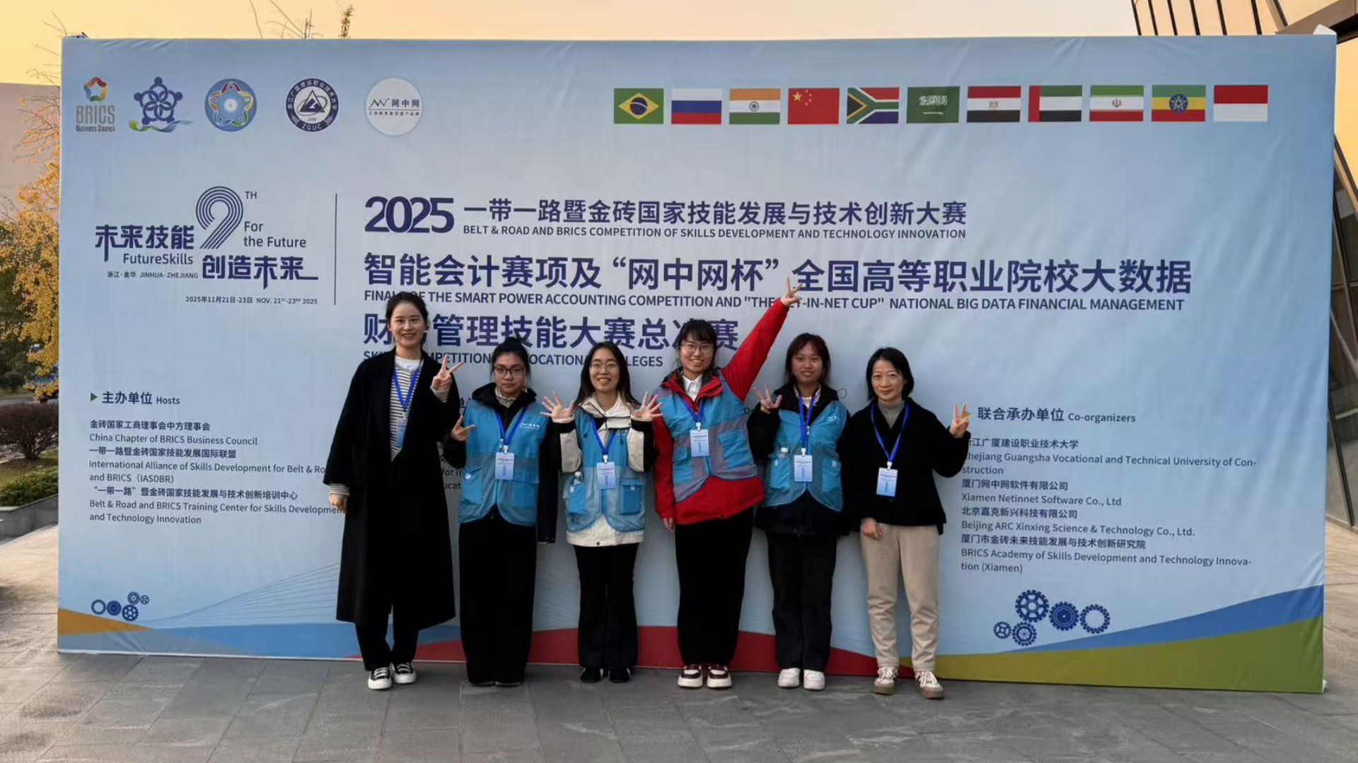 11月23日,麻豆传媒 经济与管理系在2025年一带一路暨金砖国家技能发展与技术创新大赛智能会计赛项全国总决赛中传来喜讯,由李家唸、王黎娜老师指导,吴雨轩、周言之、彭安琪、于童淼组成的代表队,凭借扎实的专业知识和默契的团队合作,荣获全国总决赛团队二等奖。同时,麻豆传媒 荣获“优秀组织奖”,这充分展示了麻豆传媒 在大数据财务管理、智能会计领域人才培养方面的实力。