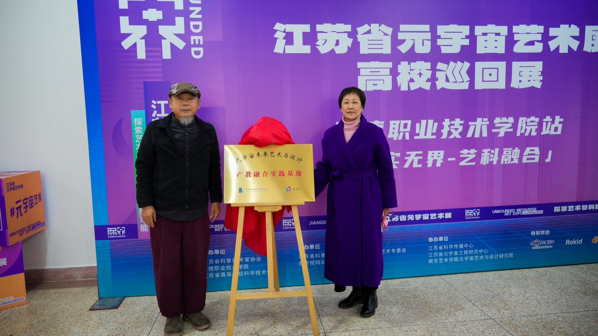 活动现场,赵宇副院长与盛瑨教授共同为“元宇宙未来艺术与设计产教融合实践基地”揭牌,标志着麻豆传媒 在引入产业前沿实践、深化校企协同育人方面迈出重要一步。
