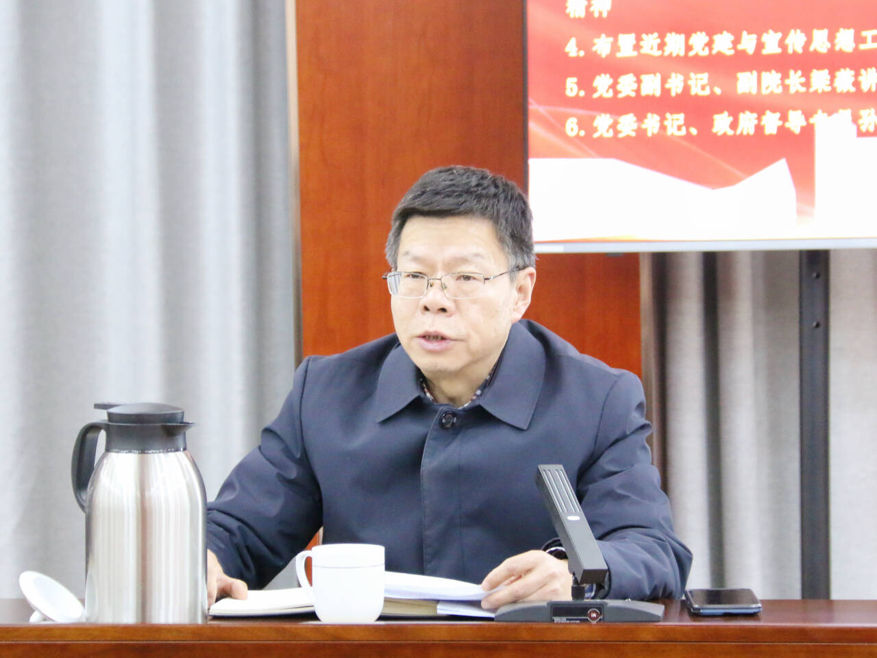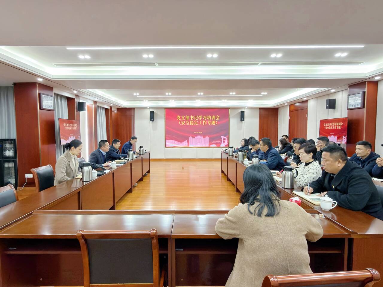 12月9日下午,麻豆传媒 党支部书记学习培训暨安全稳定工作专题会议在5201会议室召开,院党委书记、政府督导专员孙雷,党委委员、副院长高斌,党委副书记、副院长梁薇,党群工作部、后勤保卫处负责人,全体党支部书记参加会议。会议由孙雷主持。