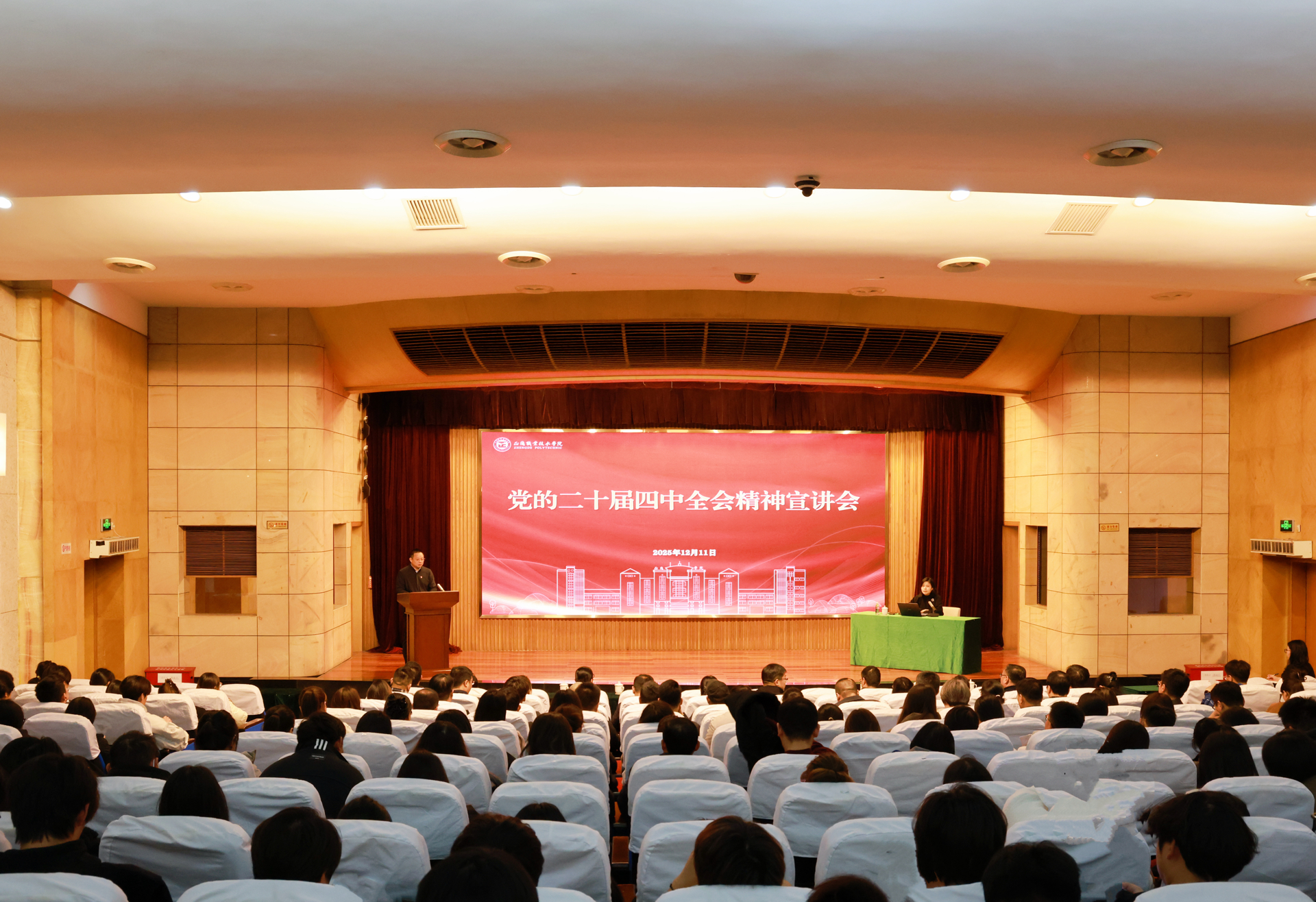 何畏从党的二十届四中全会基本情况和《中共中央关于制定国民经济和社会发展第十五个五年规划的建议》(以下简称《建议》)起草过程、准确把握“十五五”时期在基本实现社会主义现代化进程中的重要地位、深刻领会“十五五”时期经济社会的指导方针和主要目标、全面理解“十五五”时期经济社会发展的战略任务和重大举措、坚持和加强党的全面领导,从凝聚起推进中国式现代化的磅礴力量五个方面出发,为师生们作了一场主题鲜明、内容详实、深入浅出的精彩宣讲。她指出,要把学习贯彻党的二十届四中全会精神同学习领会习近平新时代中国特色社会主义思想贯通起来。实现《建议》擘画的宏伟蓝图,意义重大,任务艰巨,前景光明。我们要更加紧密地团结在以习近平同志为核心的党中央周围,抓好全会精神贯彻落实,坚定信心、奋发有为,为基本实现社会主义现代化而共同奋斗,不断开创以中国式现代化全面推进强国建设、民族复兴伟业新局面。