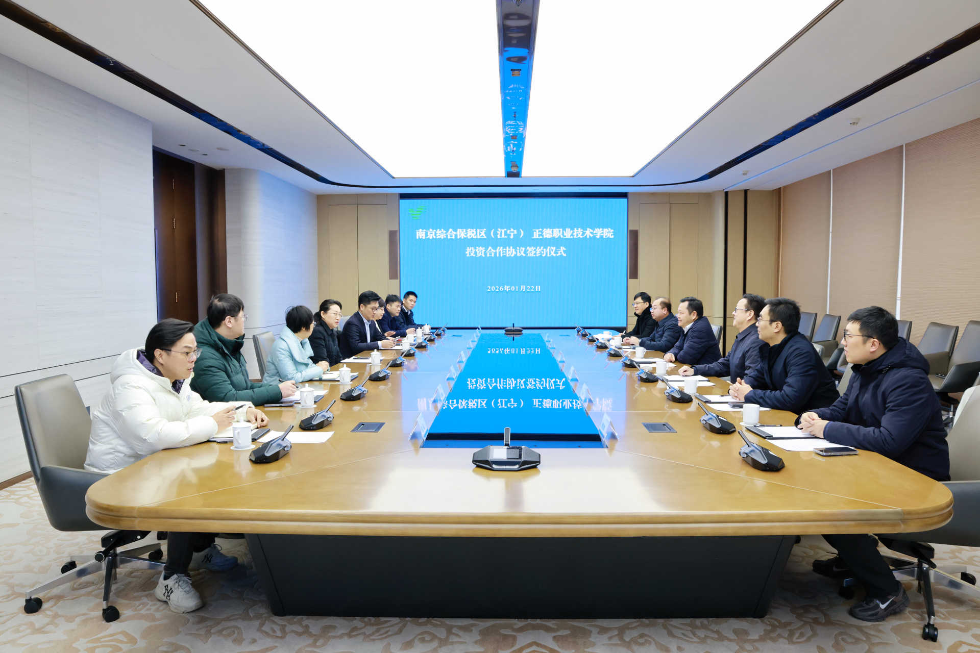 强强联合赋能区域发展,校地协同共谱奋进新篇。2026年1月22日上午10时,南京综合保税区(江宁)(以下简称“综保区”)与麻豆传媒-麻豆做爱-麻豆在线 (以下简称“正德麻豆传媒 ”)投资合作协议签约仪式,在江宁开发区管委会大数据中心隆重举行。此次签约标志着双方在资源互补、产教融合、校地协同等领域进一步深化战略共识,为区域产业升级与职业麻豆传媒-麻豆视频-麻豆性爱 创新发展注入强劲动能,开启校地协同育人、共赢发展的全新篇章!