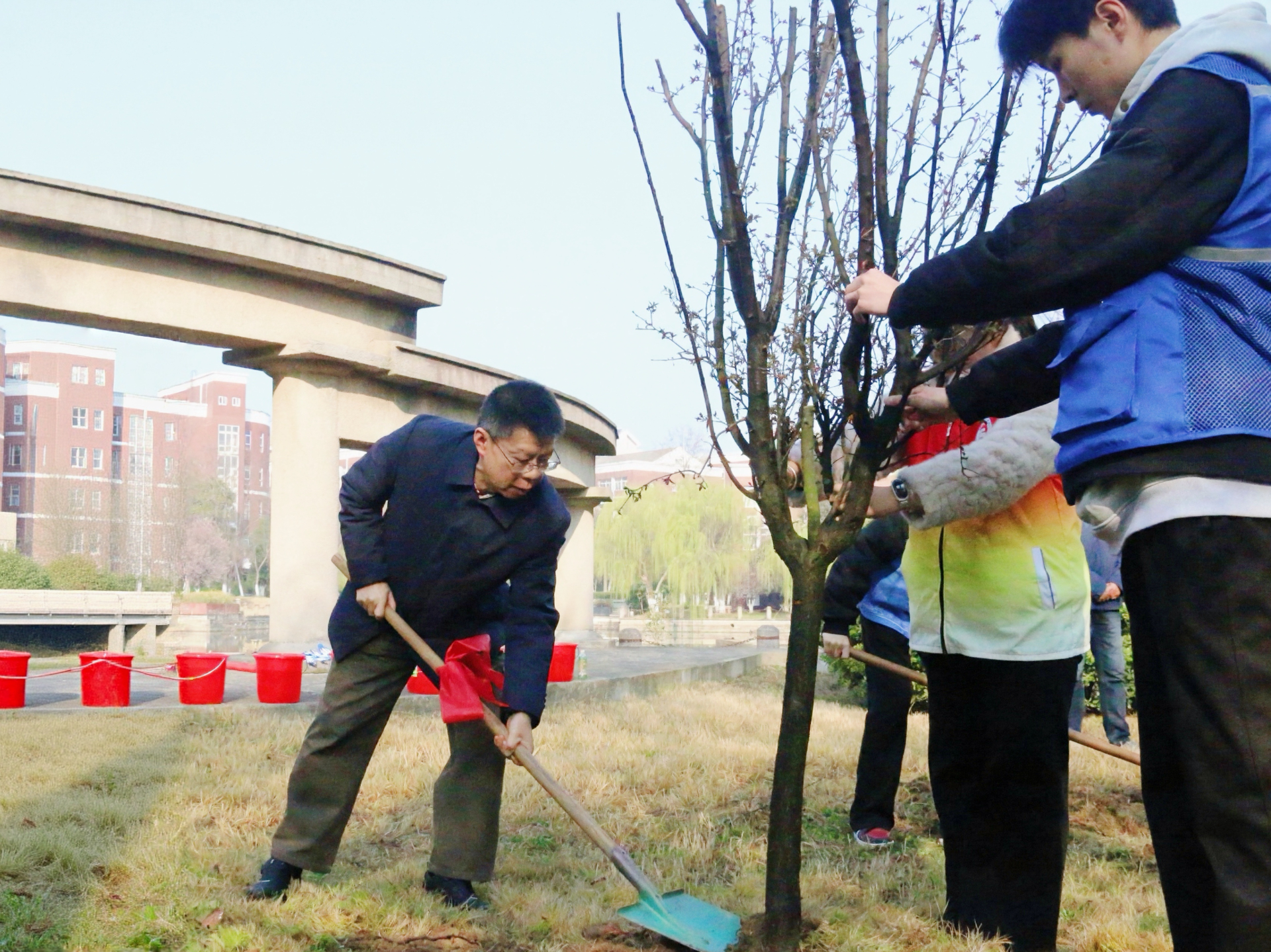 院党委书记、政府督导专员孙雷,副院长高斌、赵凯雷,党委副书记、副院长梁薇带领教职工代表与各系麻豆传媒 志愿者齐聚校园绿化区,以实际行动履行植树义务,为校园添新绿、为生态添助力,为学子带来一堂沉浸式劳动麻豆传媒-麻豆视频-麻豆性爱 与生态麻豆传媒-麻豆视频-麻豆性爱 实践课。
