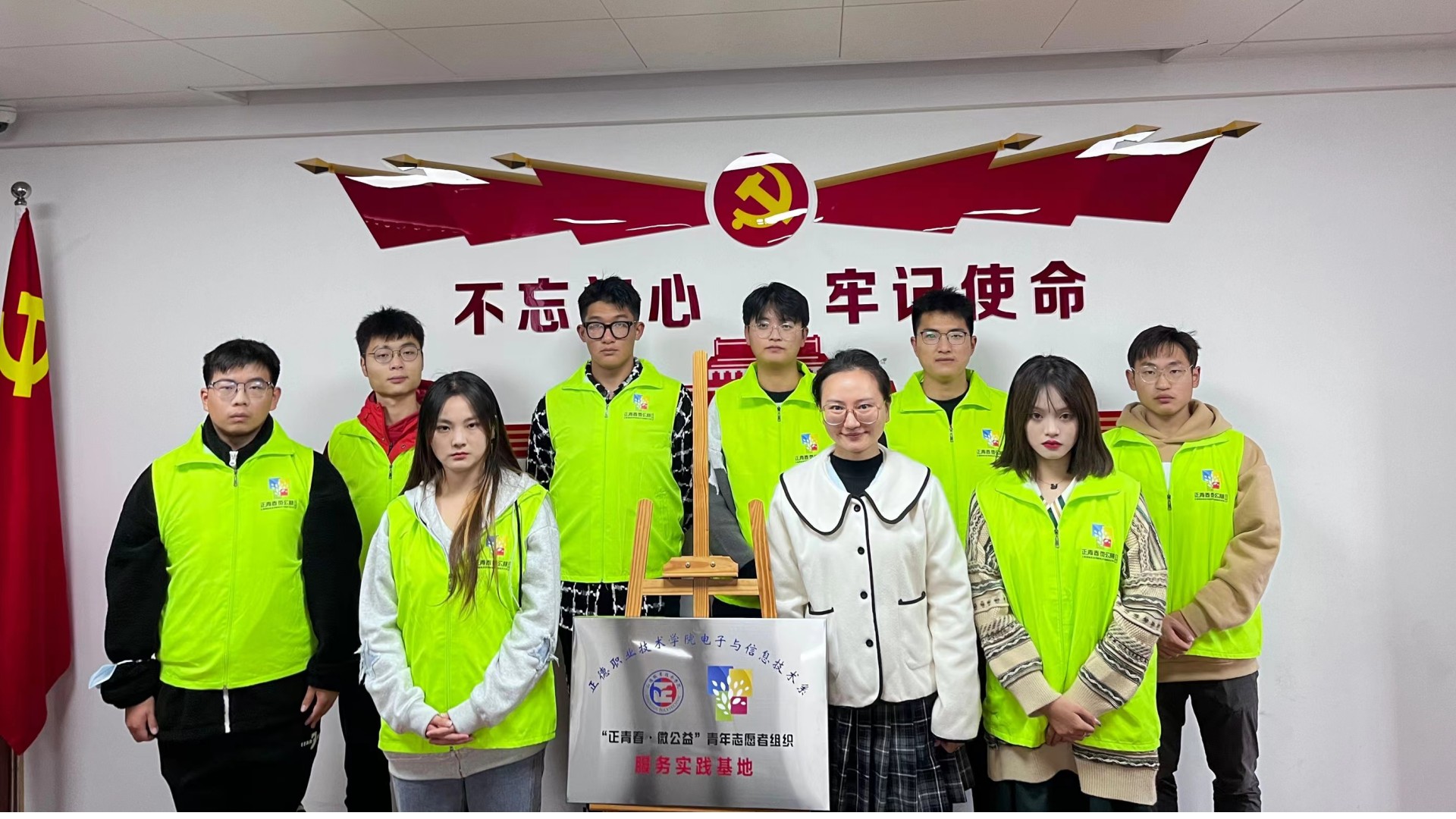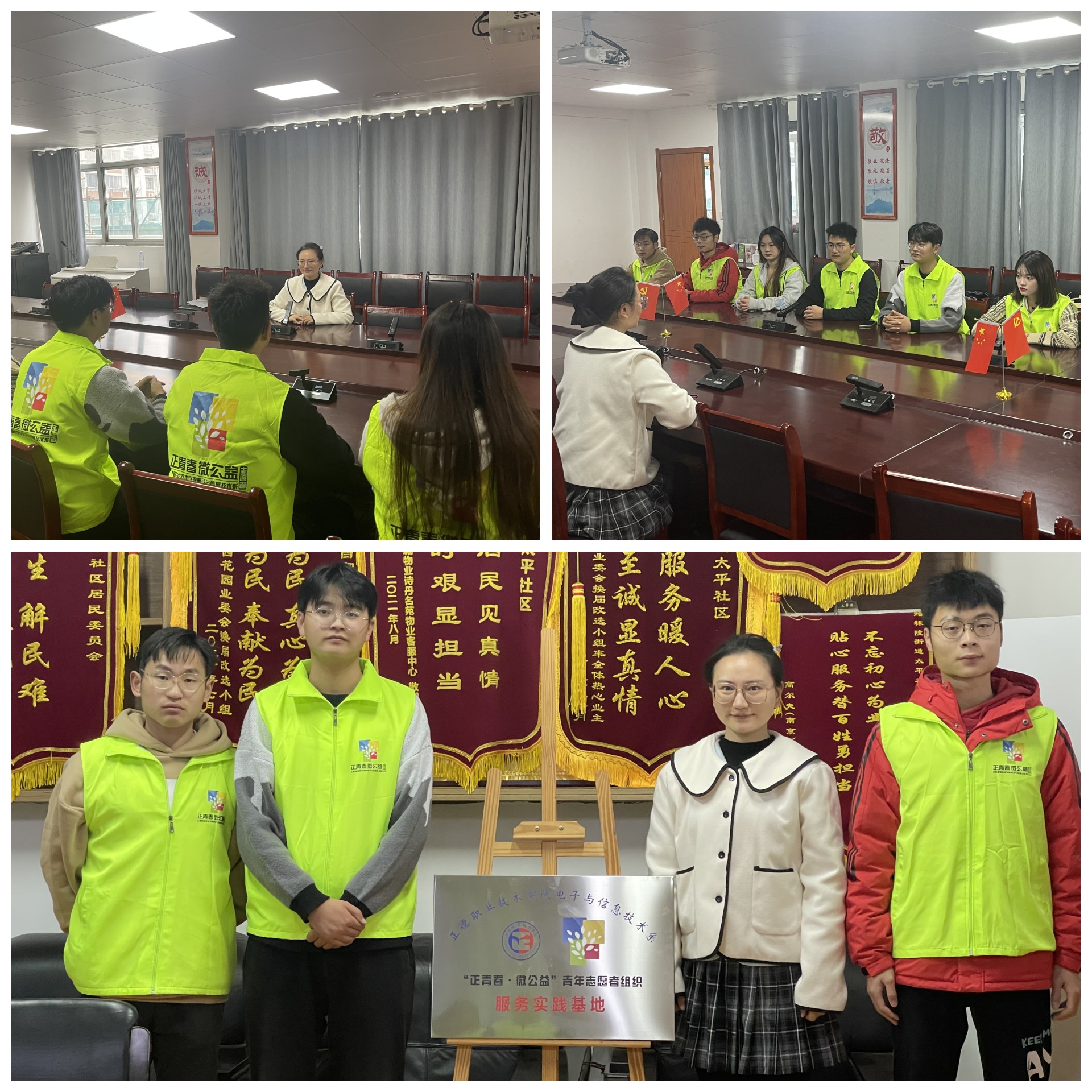 为全面贯彻党的二十大精神,深入学习贯彻习近平新时代中国特色社会主义思想,引导大麻豆传媒 力量走进社区、服务社区,为基层社区治理创新注入“青智慧”和“青动力”,11月19日下午,电子与信息技术系团总支麻豆传媒 会成员赴秣陵街道太平社区进行“大麻豆传媒 志愿服务基地”挂牌仪式。太平社区副主任邓玉萤出席了本次挂牌仪式。