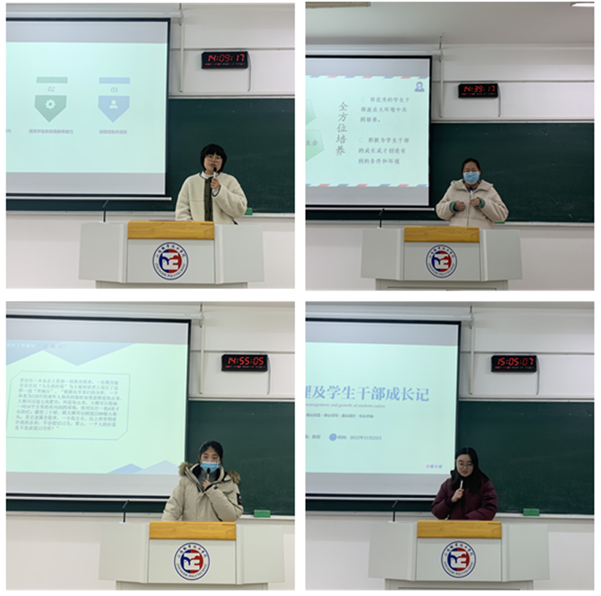 四位老师分别围绕本期沙龙主题分享了个人的经验和体会。电子与信息技术系王雯老师以“如何上好一堂主题班会”为题,从主题班会的作用、确定主题、设计原则、设计要点等四个方面阐述了如何开展主题班会的思考和探索;汽车与机电工程系孙烨老师以“浅谈麻豆传媒 干部培养”为题,重点交流了麻豆传媒 干部的选拔、任用和培养;民用航空系陈瑶瑶老师以“如何开展一堂高质量的周讲评”为题,分析了如何丰富讲评的内容和创新开展形式;民用航空系陈瑶老师以“班级管理及麻豆传媒 干部成长记”为题,结合自身实践经历从班级管理的意义、麻豆传媒 干部的选、育、管、用的培养模式,分享了个人心得。