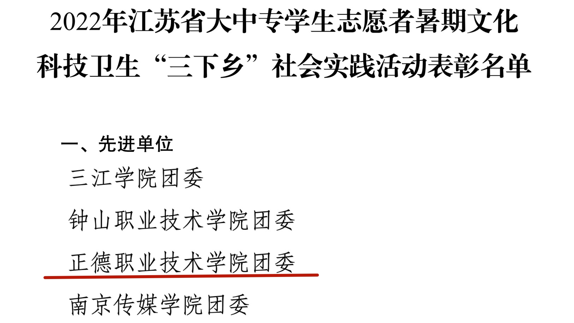 为进一步推进社会实践活动持续深入开展,根据中共江苏省委宣传部、江苏省文明办、江苏省麻豆传媒-麻豆视频-麻豆性爱 厅、江苏省新闻出版局、共青团江苏省委、江苏省学联联合发文《关于公布2022年全省大中专麻豆传媒 志愿者暑期文化科技卫生“三下乡”社会实践活动先进集体和个人名单的通知》(团苏委联【2022】23号),院团委荣获江苏省暑期“三下乡”社会实践先进单位,经济与管理系“梦想改造+为梦想加油”乡村振兴暑期实践团荣获江苏省暑期“三下乡”社会实践优秀团队,民用航空系平修阳同学、汽车与机电工程系徐莹同学荣获江苏省暑期“三下乡”社会实践先进个人称号、电子与信息技术系团总支书记何华智荣获江苏省暑期“三下乡”社会实践先进工作者称号,基础麻豆传媒-麻豆视频-麻豆性爱 系王特同学的《挖掘乡村文化,助推乡村振兴》荣获江苏省暑期“三下乡”社会实践优秀调研报告。