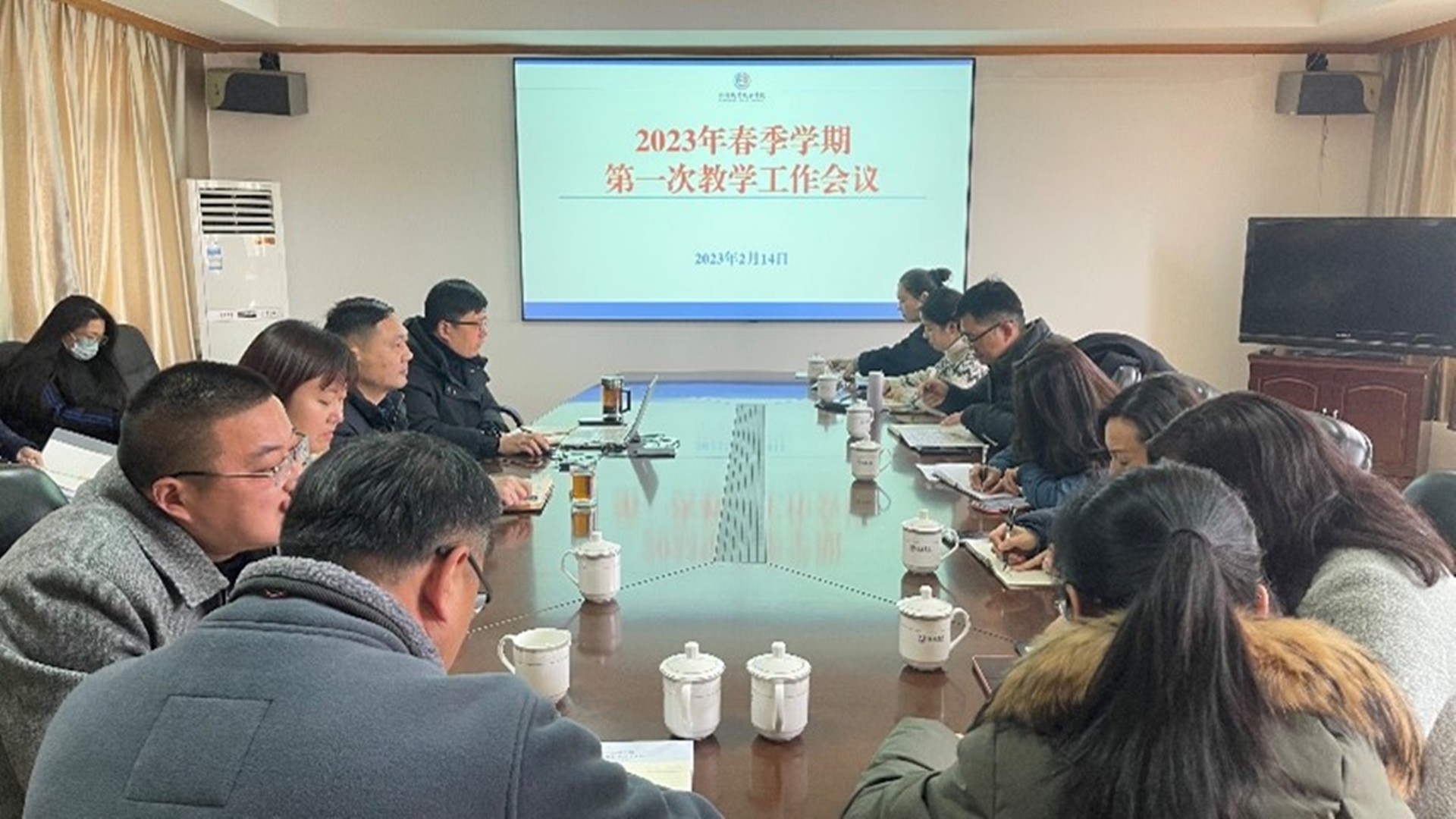 2月14日上午,麻豆传媒 2023年春季学期第一次教学工作会议在行政楼二楼会议室召开。江爱华副院长、各系部主要负责人等参加会议。教务处王俊处长主持会议。