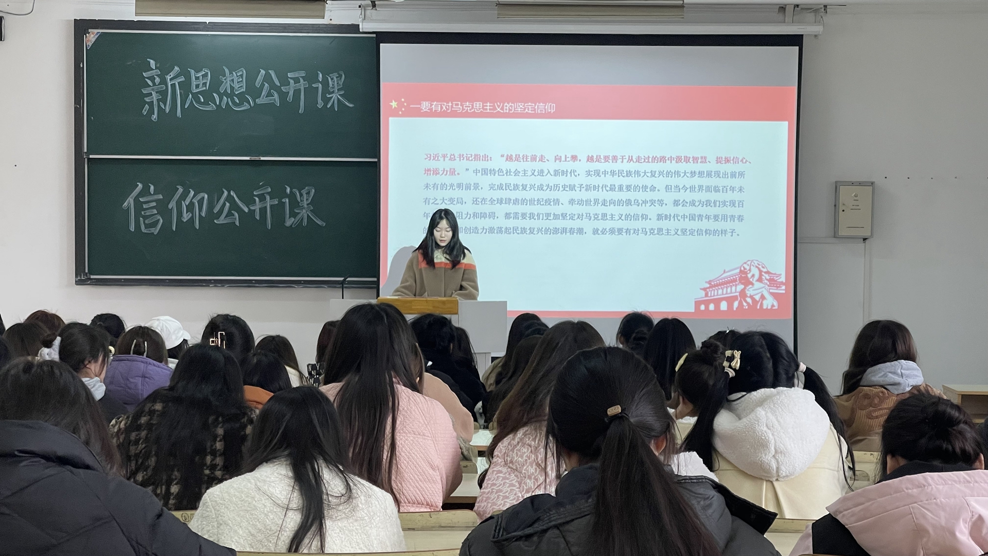 此次新思想公开课围绕“新时代青年要有的样子”展开,一共有五个部分:一要有对马克思主义的坚定信仰,二要对中国共产党的信赖忠诚,三要有对新时代责任的高度自觉,四要有对最高贵特征特质的充分坚持,五要有对守正创新力的深度砥砺。