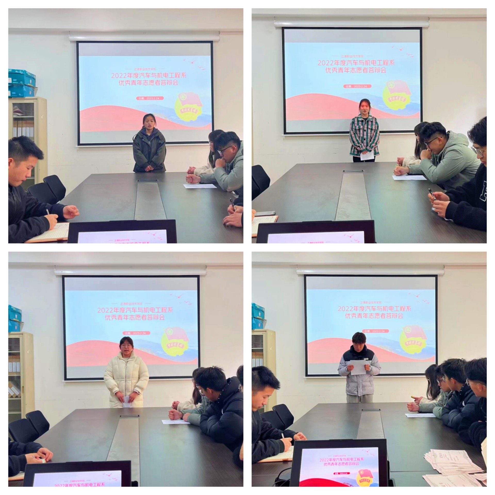 为深入学习贯彻党的二十大精神,扎实推进志愿服务工作。2023年2月27日,下午13时,汽车与机电工程系在7210会议室开展了系部2022年优秀志愿者答辩会。汽机系志愿服务团队出席本次会议,由团总支书记李浩文主持。