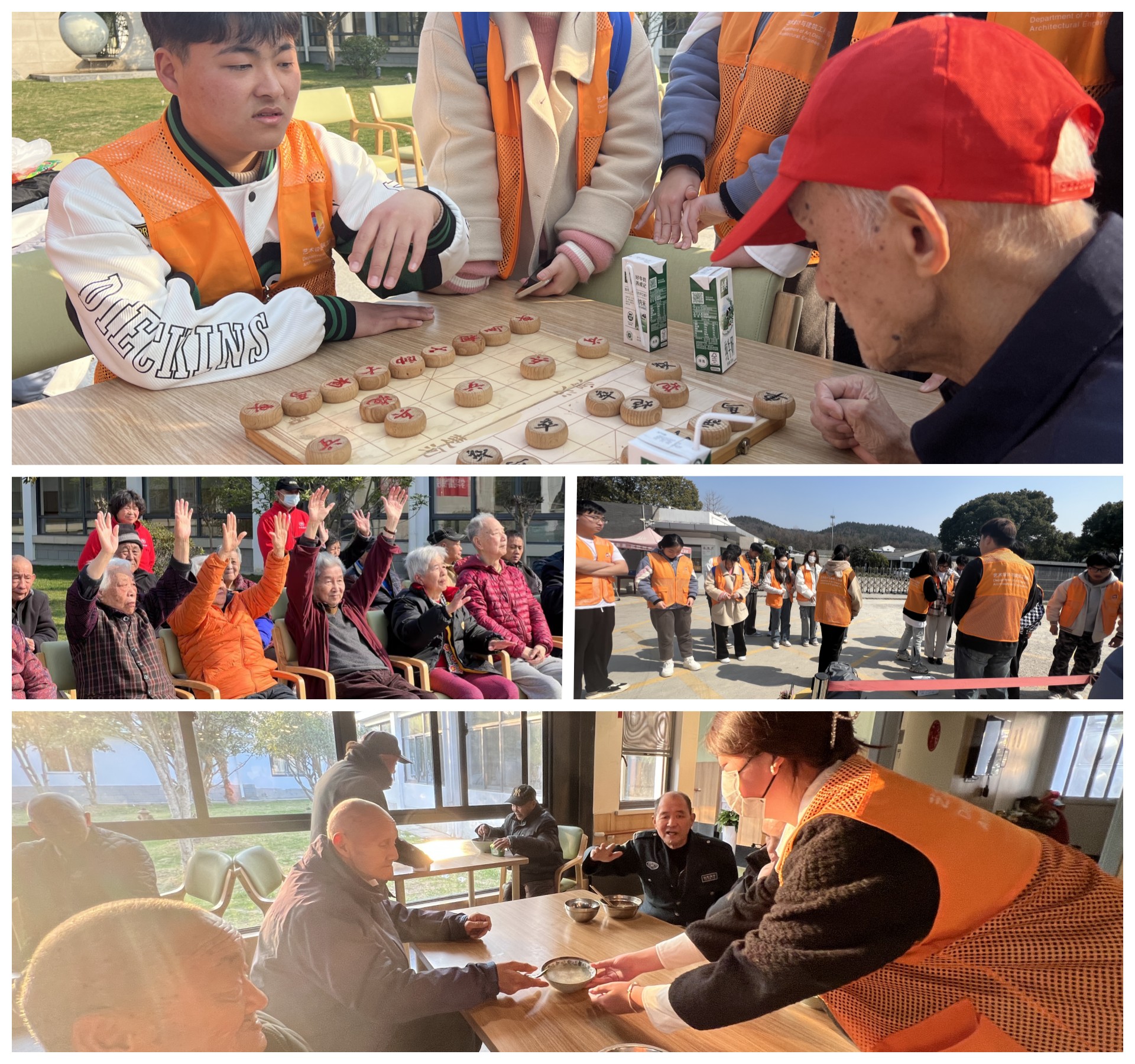 3月4日下午,艺术设计与建筑工程系30余名志愿者抵达和怡韩府山颐养中心。颐养中心姜院长给志愿者们介绍了老人年轻时候的事迹,志愿者为老人们献唱红歌;带领老人做拍拍操、八段锦;与老人们一起进行管道传球和套圈的小游戏。