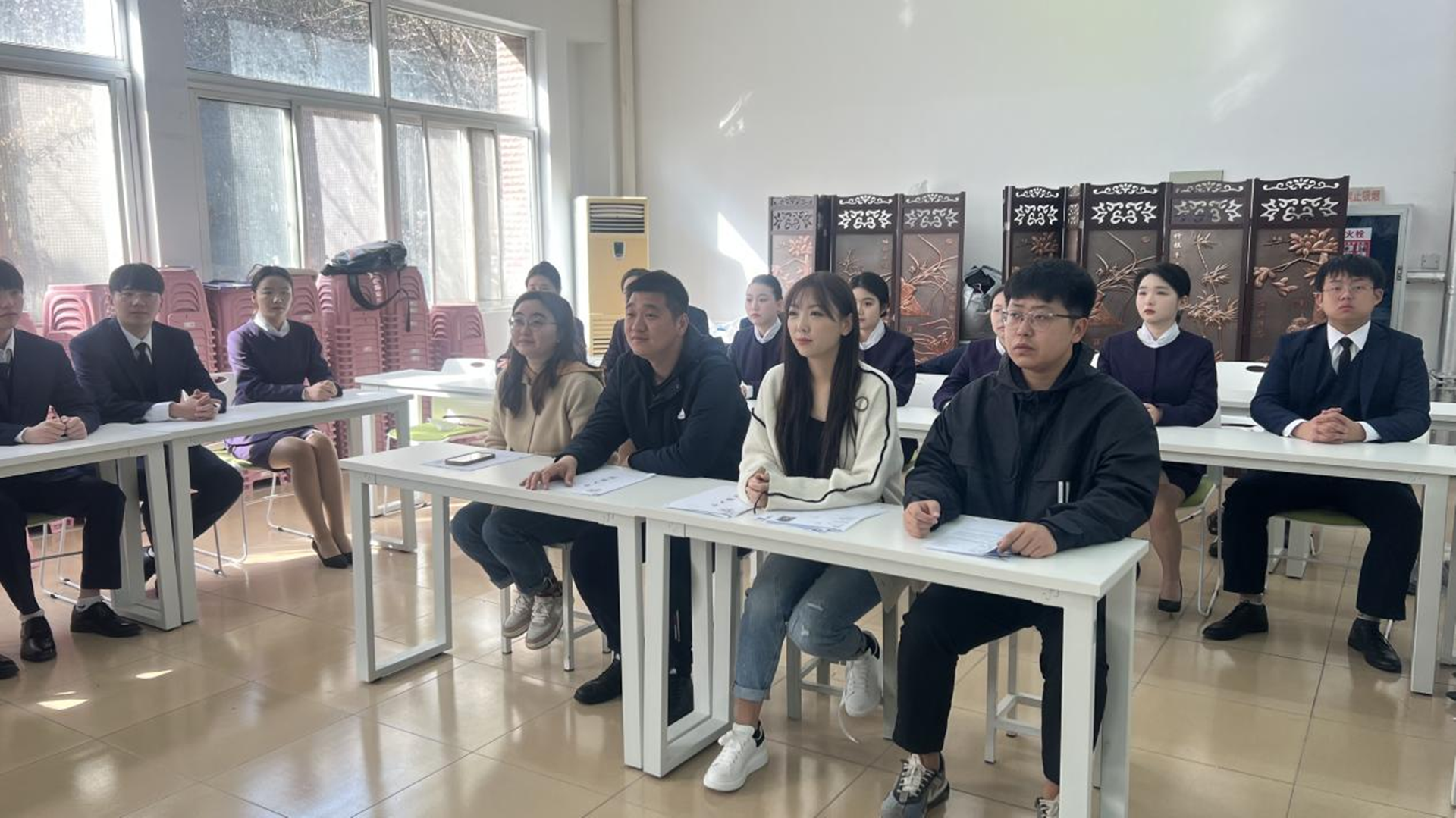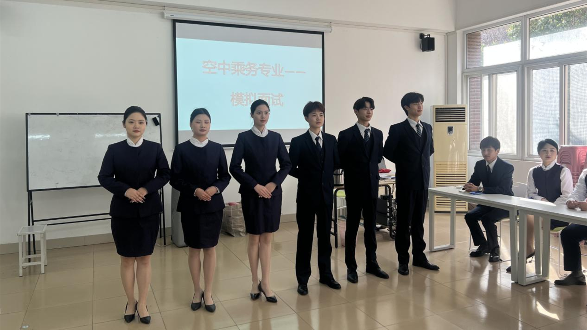 为深入贯彻落实《国家职业麻豆传媒-麻豆视频-麻豆性爱 改革实施方案》文件精神,为麻豆传媒 模拟真实的面试现场,熟悉正规的面试流程,引导麻豆传媒 情境化感受航空公司面试的全过程,也为即将到来的面试季做积极的准备。民用航空系于3月15日上午开展2021级空中乘务专业模拟面试活动。活动由民航系党支部书记、副主任虞骏卿、专业教师朱枫以及辅导员陈瑶和顾轩宇担任评委。