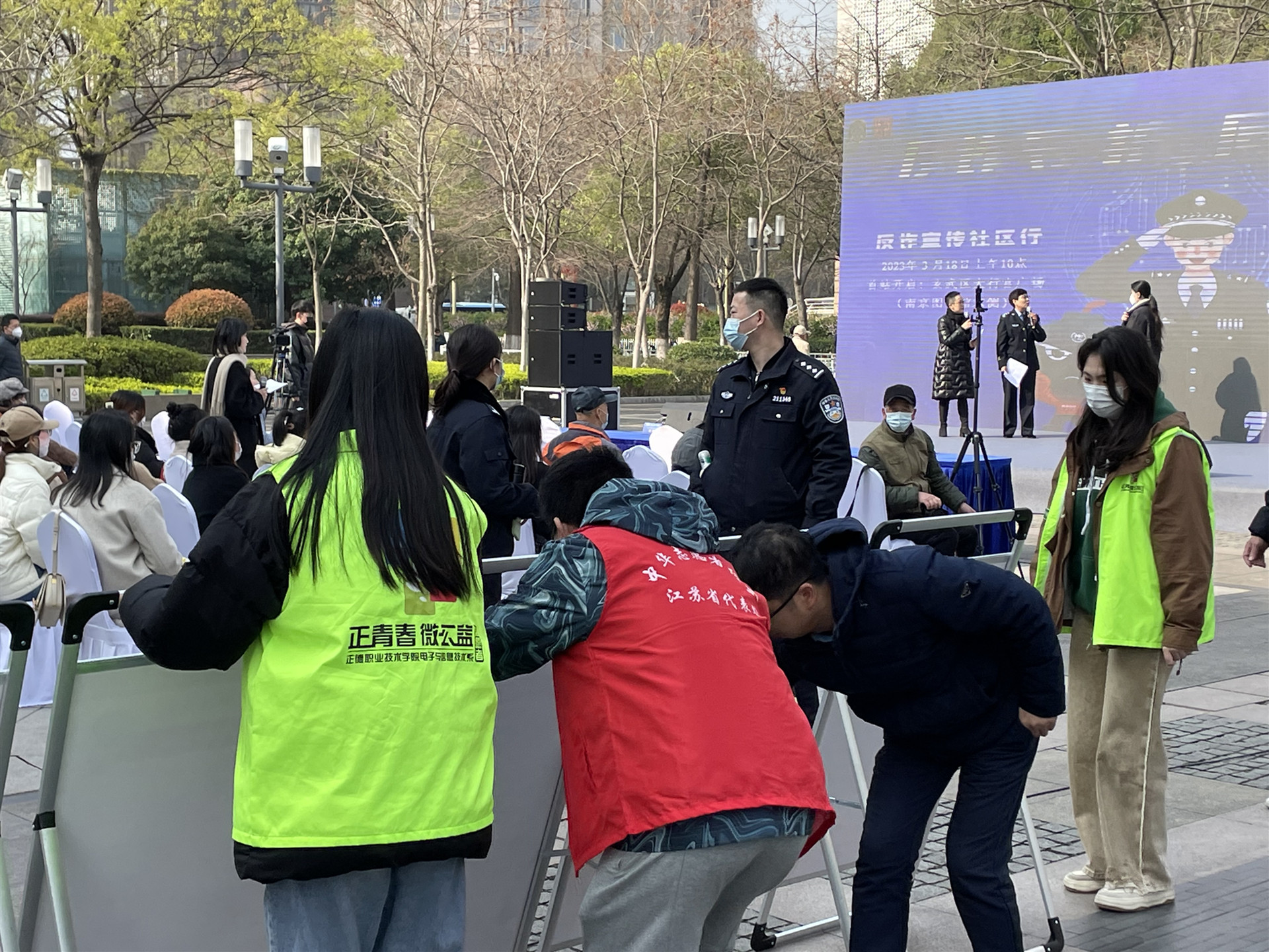 3月18日上午,南京市公安局刑警支队、南京广电集团共同举办“反诈·守护 同心·同行”反诈骗宣传活动,向电信网络诈骗宣战。活动旨在通过文艺汇演的形式展现反诈故事、宣传反诈知识,让人感受到警民同心反诈的决心和信心,从而让身边的每一位成员主动承担起反诈宣传的责任。电子与信息技术系志愿者全程参与了本次活动的志愿服务工作。