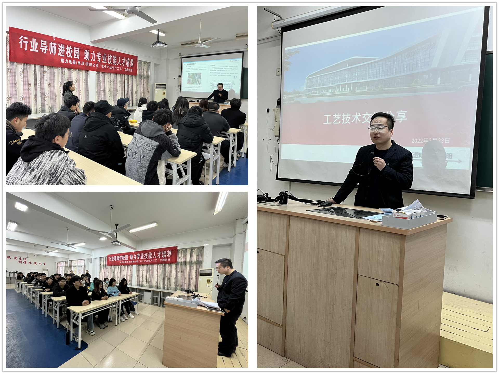 党的二十大报告提出要深入实施人才强国战略,努力培养造就更多新时代高技能人才。3月23日下午,电子与信息技术系邀请格力电器(南京)有限公司工艺设备部部长肖昌芳,来麻豆传媒 面向2021级电子信息工程技术专业大二麻豆传媒 开展电子产品生产工艺知识专题讲座活动,助力麻豆传媒 专业技能人才培养。
