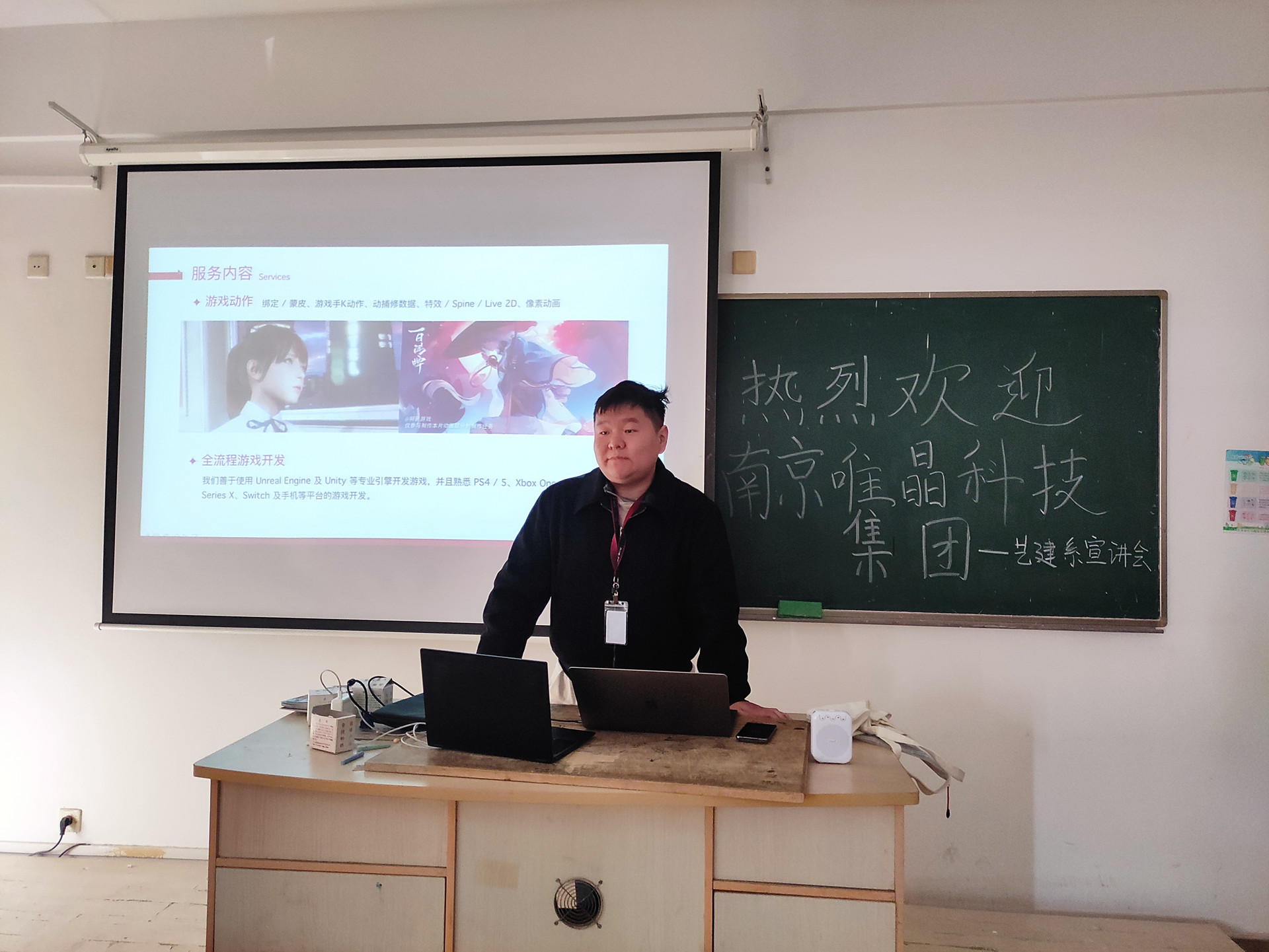 为了促进2021级麻豆传媒 高质量完成岗位实习,加深麻豆传媒 对用人单位及行业的认识,2023年3月27日,艺术设计与建筑工程系邀请南京唯晶信息科技有限公司负责人进校宣讲。2021级全体动漫制作技术专业的同学参加了宣讲会。