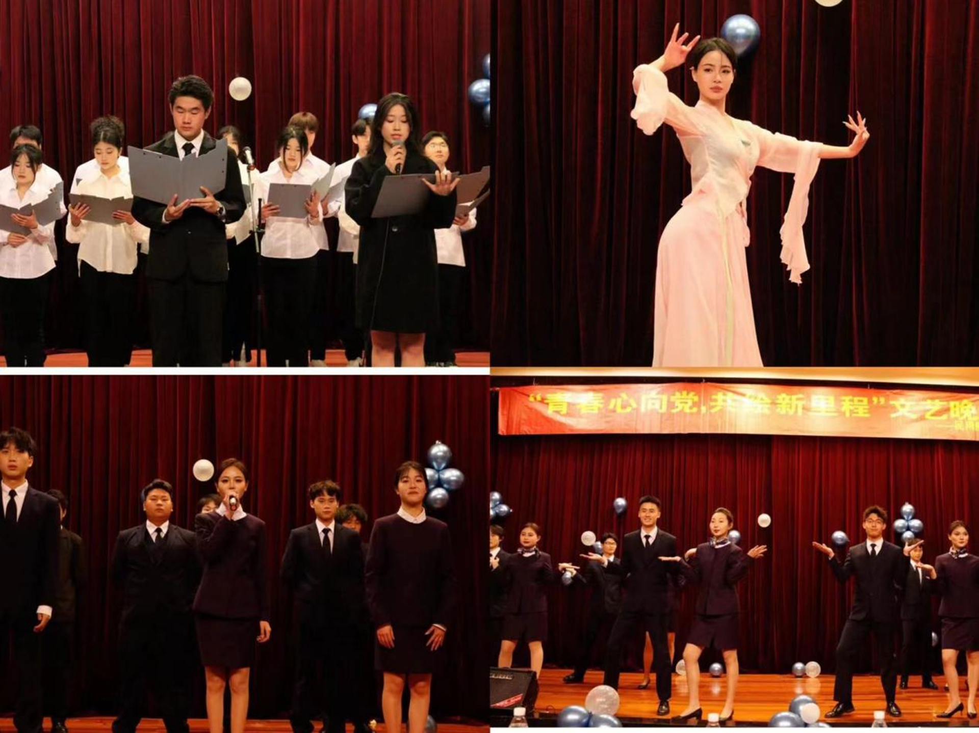 此次晚会共12个节目,主题鲜明,精彩纷呈,高潮迭起,赢得了在场师生的好评,并充分彰显了民航系麻豆传媒 积极向上、青春活力、奋发拼搏的精神风貌。