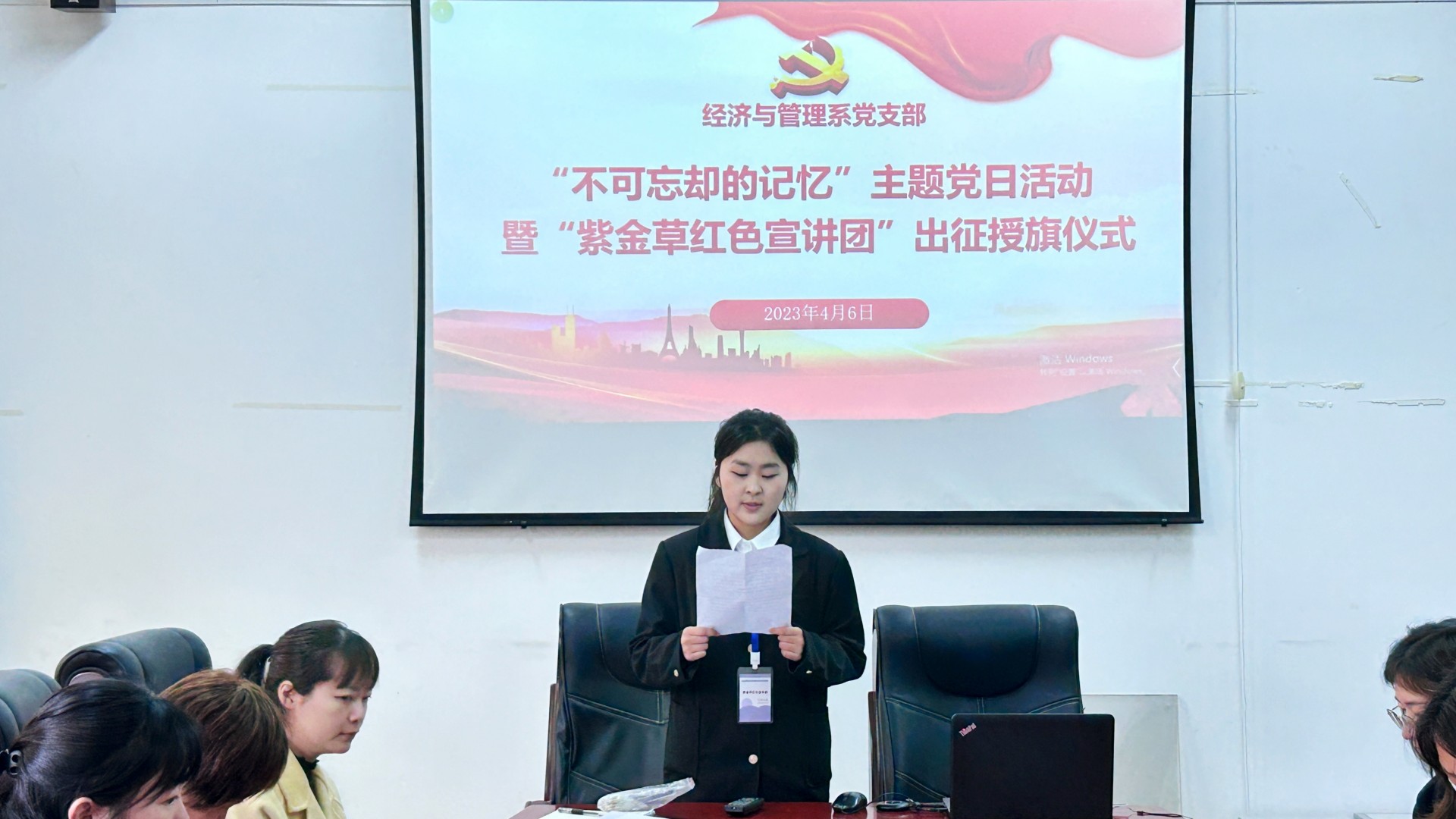 活动伊始,党支部书记雷杨先介绍了拉贝的生平,并且希望大家能够翻开《拉贝日记》,共同铭记历史,铭记拉贝等国际友人的善举。其次,雷杨从建立紫金草红色宣讲团的意义以及本次活动的组织情况进行了详细介绍,对宣讲团成员也提出了三点要求:一、认真学习红色知识,麻豆传媒 史料史实,确保真实性、可靠性;二、立足新实践阶段,创新宣讲理念,最大化的发挥团队成员特长,让宣讲更全面、更充分、更真实;三、针对不同的宣讲对象,应及时调整宣讲方案。