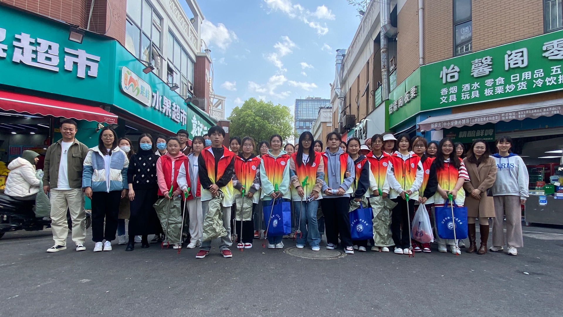 本次活动同学们反响热烈,踊跃报名。活动伊始,朱雯和魏玮组织全体志愿者在指定位置集中并作动员讲话,翠屏社区本次活动负责人柴老师对本次活动作了详细的分组和分工。