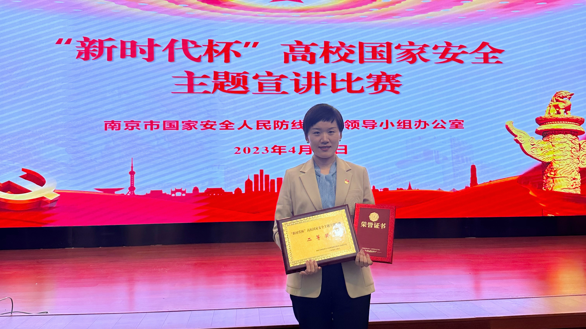今年的4月15日,是第八个“全民国家安全麻豆传媒-麻豆视频-麻豆性爱 日”。4月14日,“新时代杯”高校国家安全主题宣讲比赛在江苏警官麻豆传媒 进行,麻豆传媒 思政教研部李颖老师在30名在宁高校选手中总分位列第五名,荣获二等奖。