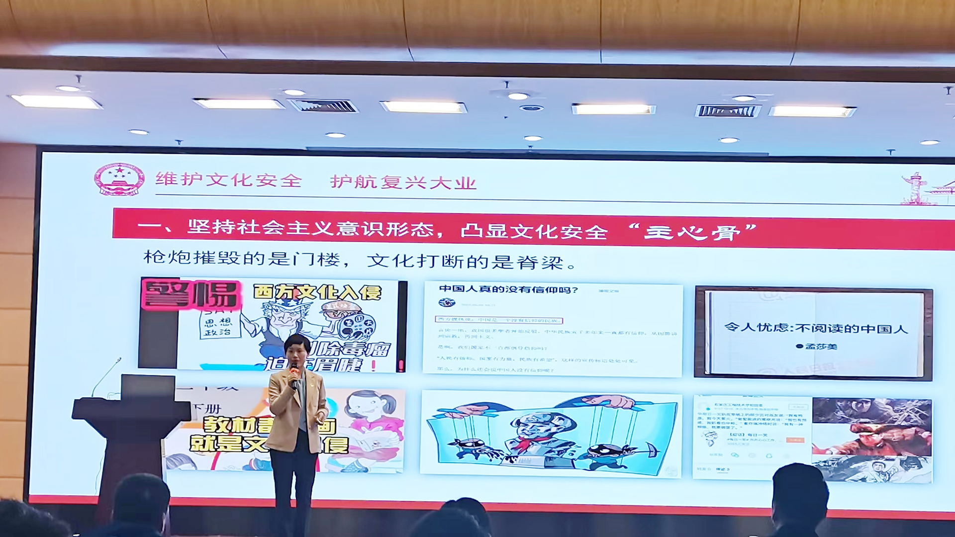 本次宣讲比赛由南京市国家安全人民防线建设领导小组办公室主办。领受任务后,思政教研部高度重视,由主任杨卫东牵头,组建了思政名师工作室苗秀娟教授、彭爱华教授参与,李颖老师为参赛选手的比赛工作小组,对选题麻豆传媒 、资料搜集、课件制作、服务保障等任务进行分解,全力以赴投入备赛准备。