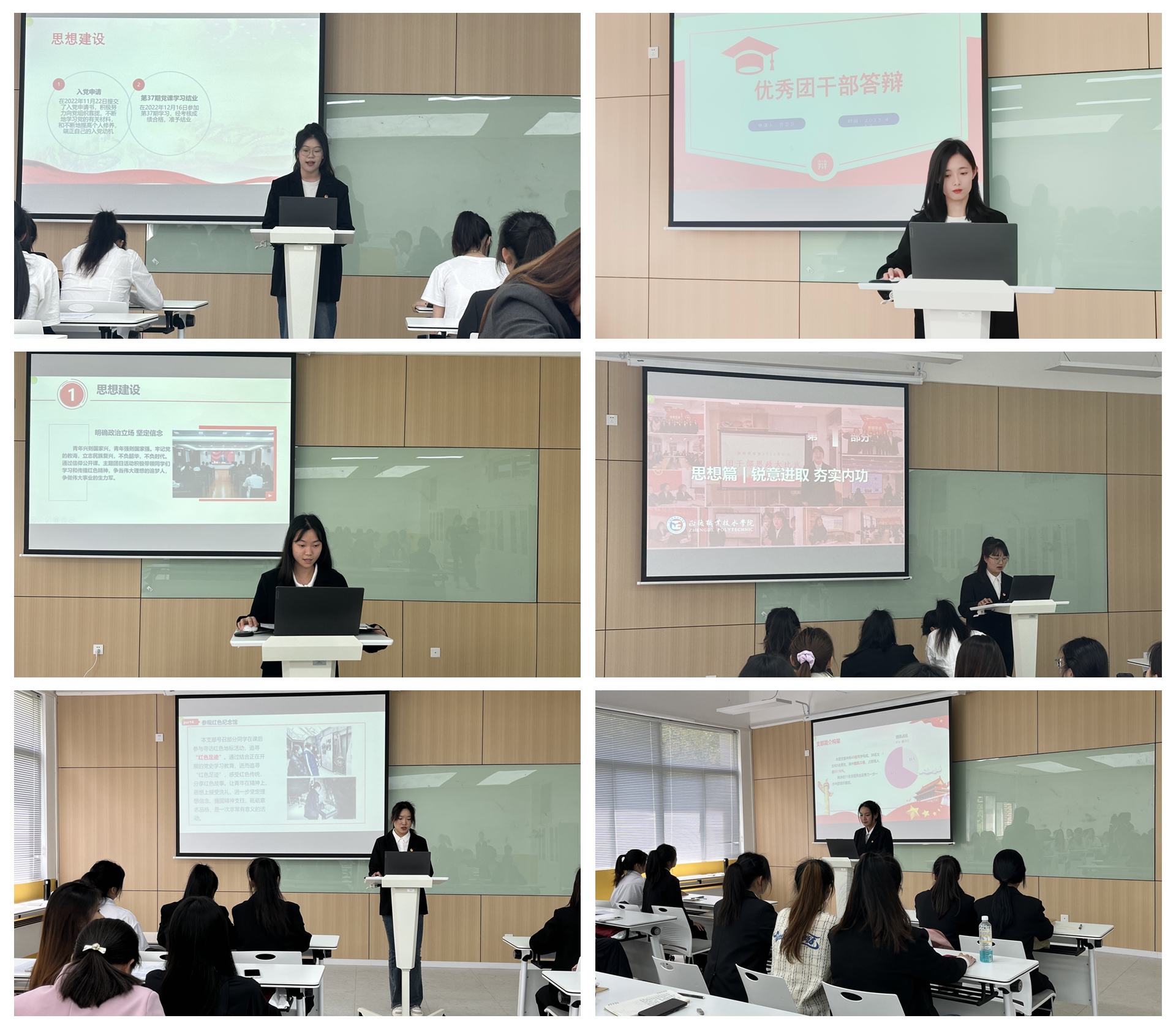 红旗团支部答辩中,各团支部生动地展示了主题鲜明、丰富多彩的主题团日活动,概括总结了青年大学习、团费收缴、团支部建设工作中的特色、思考和不足,一张张精美的图片、一组组详实的数据生动展示了各个团支部的风采。