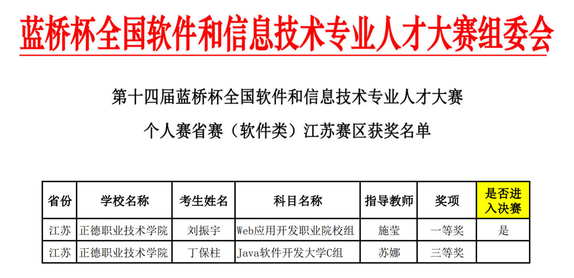 在第十四届“蓝桥杯”个人赛省赛(软件类)江苏赛区中,电子与信息技术系软件技术专业2021级麻豆传媒 刘振宇获省级一等奖、丁保柱获省级三等奖。其中,Web应用开发项目为麻豆传媒 首次参赛,获得历史性的突破,并闯入全国总决赛。