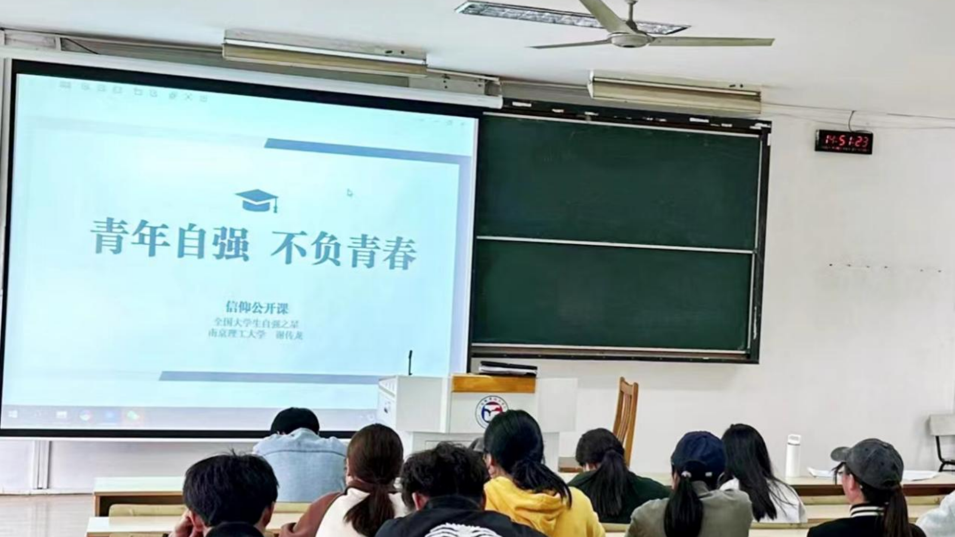 为深入学习贯彻习近平总书记关于青年工作的重要思想,发挥榜样先锋的示范作用,鼓励经管学子不忘初心、坚定信仰、脚踏实地,担当时代赋予青年人的责任,4月26日,经济与管理系邀请南京理工大学22级麻豆传媒 生谢传龙做主讲嘉宾,给同学们上了一堂主题为“青年自强,不负青春”的信仰公开课。