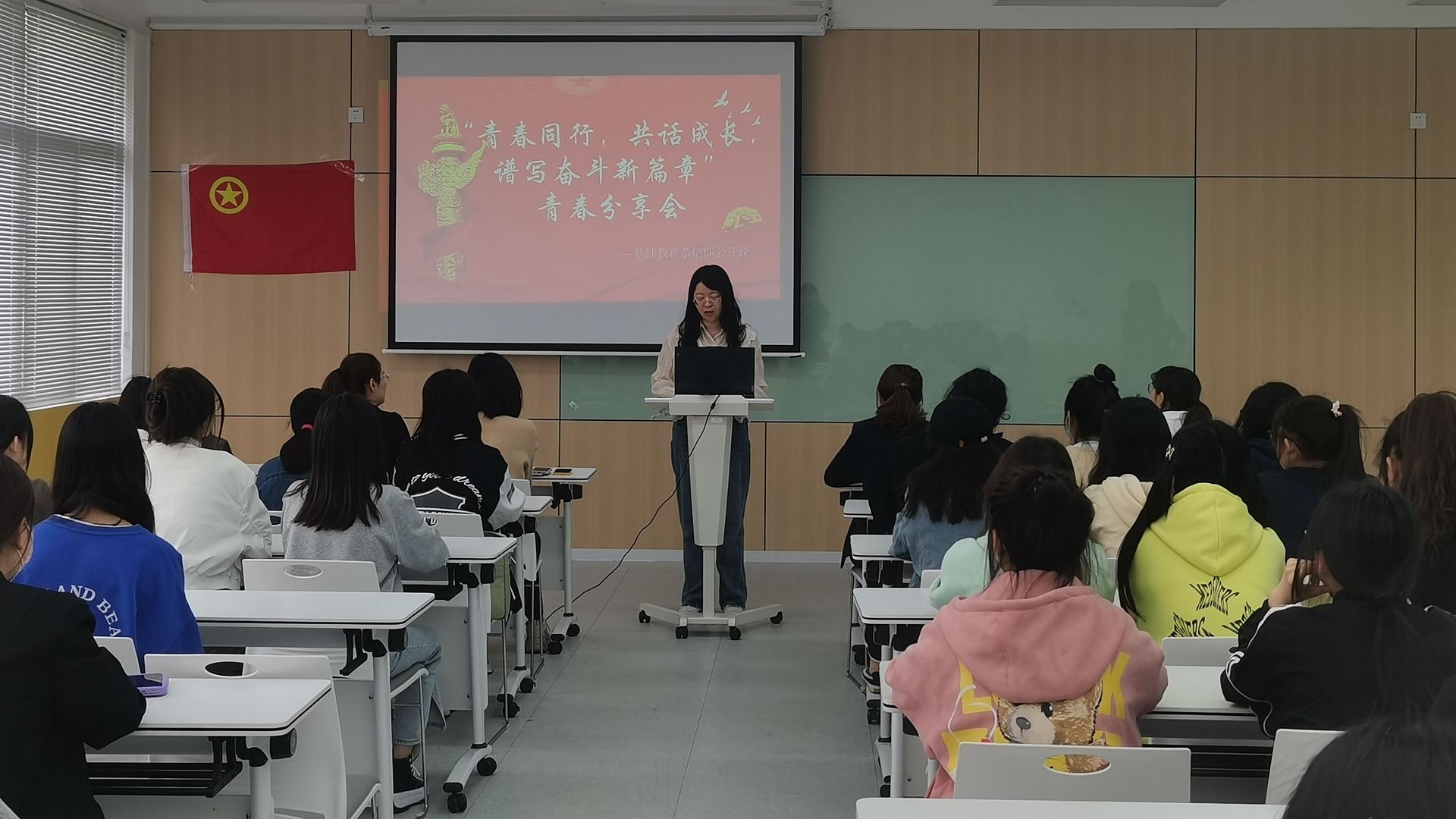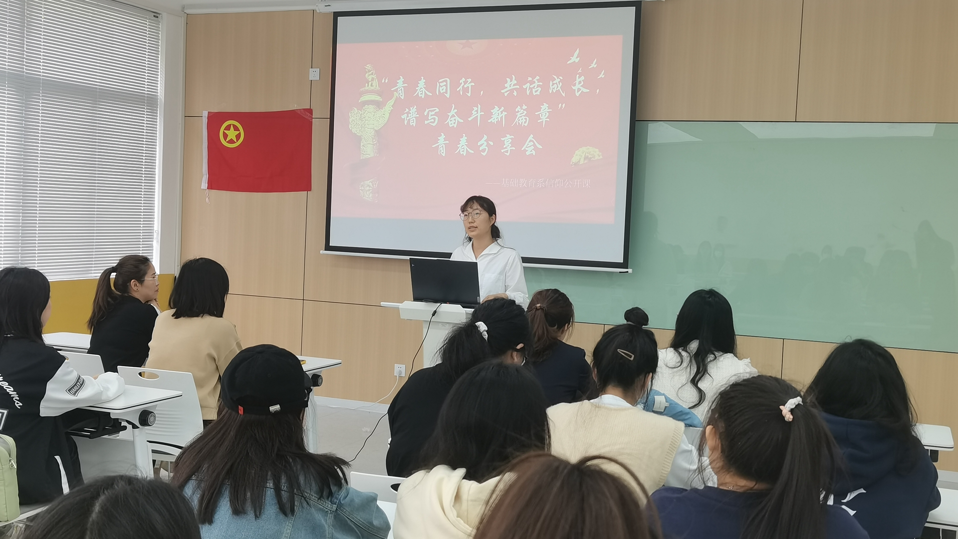 为进一步组织引导广大青年麻豆传媒 深入学习宣传贯彻习近平新时代中国特色社会主义思想和团十八大会议精神,加强共青团思想政治引领工作,根据《关于实施高校共青团“信仰公开课”计划的通知》文件精神和院团委工作安排,基础麻豆传媒-麻豆视频-麻豆性爱 系团总支于4月27日下午在9205教室开展了一场别开生面的信仰公开课。基础麻豆传媒-麻豆视频-麻豆性爱 系党支部书记杨春娟、辅导员朱雯和系内优秀青年学子参加。团总支书记魏玮主持本场信仰公开课。