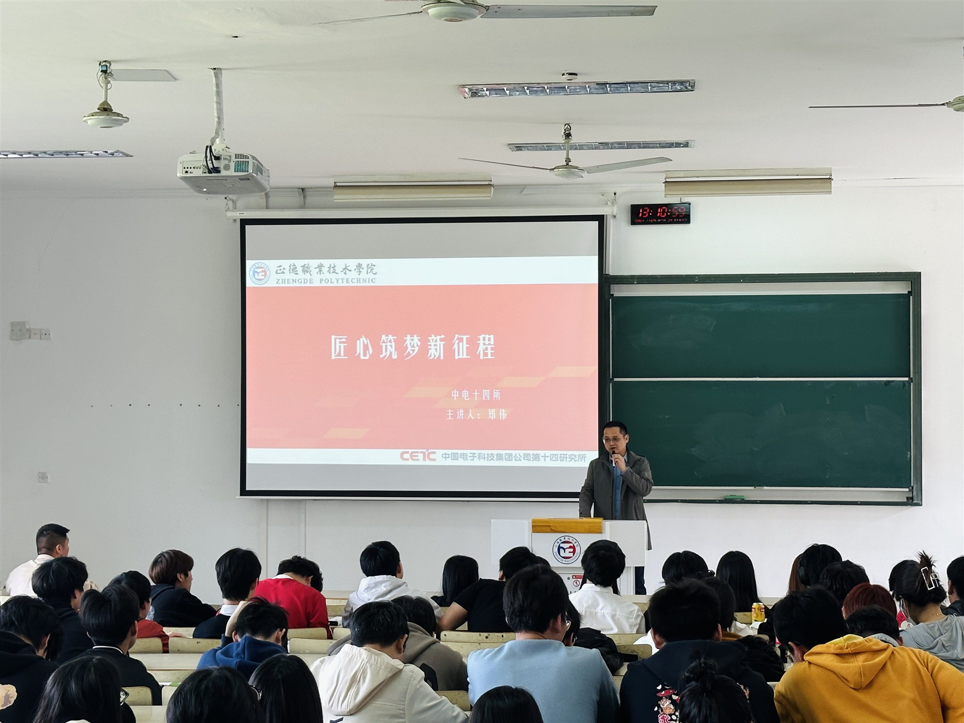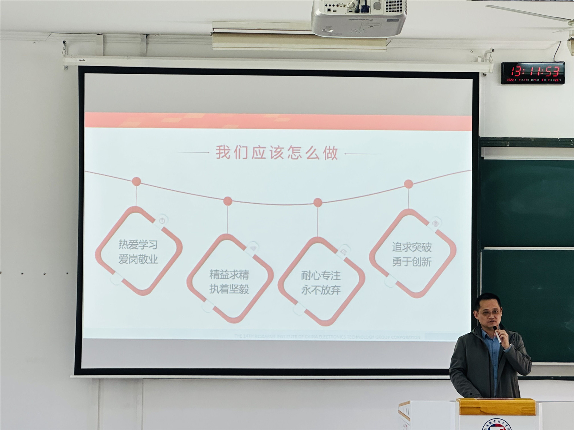 讲座中,郑伟讲述了他对“工匠精神”的解读与践行,分享了他在中国电科十四所成长为技术骨干的人生经历,结合自己的成长轨迹和重大项目历练,讲述在工作中不断钻研专业知识,不断提升专业技能,成长为 “部门先进工作者”“优秀党员”的奋斗历程。
