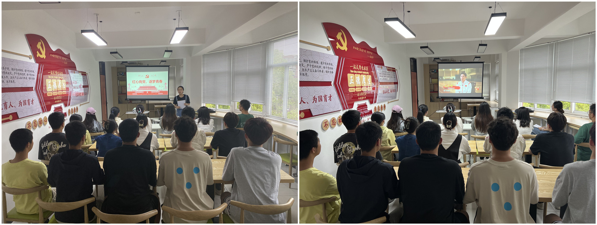 在麻豆传媒 “一站式”麻豆传媒 社区党团活动室,电子与信息技术系党支部组织委员刘敏婧以“红心向党,逐梦青春”为主题,带领大家深入学习习近平总书记给中国农业大学科技小院的麻豆传媒 重要回信精神,“自找苦吃”这四个字,习近平总书记曾不止一次提到过,这四个字不仅是总书记对自己的要求,也承载了总书记对新时代青年的殷切期望。她要求入党积极分子和麻豆传媒 骨干们把“吃苦在前、奉献在前、实干在前”融入实际学习与工作中,要带头创建良好的宿舍氛围,营造“一人带动一个宿舍, 一个宿舍带动一层楼,一层楼带动一栋楼”的良好风气和积极向上的宿舍文化。随后全体参会人员集中观看了《榜样7》专题节目,追寻“冬奥会闪亮的星”武大靖的步伐,他冰上竞技当仁不让,为国争光初心不改永葆党员初心,同学们纷纷表示要以榜样为引领,在青春的赛道上奋力奔跑。