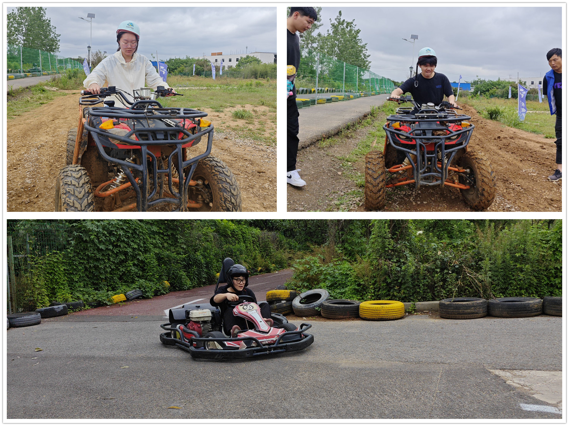 “户外越野车”与“跑跑卡丁车”项目同时开始,四辆卡丁车同时出发,选手们各现车技,你追我赶,欢呼声便响彻场地,发动机的声浪裹挟着笑声,如涟漪般扩散。