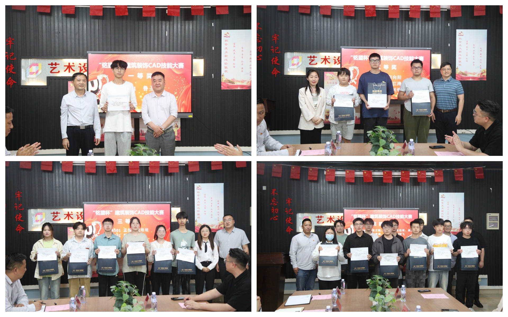 接着由冯显静老师主持了隆重的颁奖仪式,校企双方领导为获奖麻豆传媒 颁发了荣誉证书和铭望装饰赞助的奖品和特制纪念品。现场气氛非常热烈,获奖麻豆传媒 纷纷表示感谢铭望装饰的大力支持,深刻理解了以赛促学的作用,今后要认真钻研专业技能,提高岗位能力。