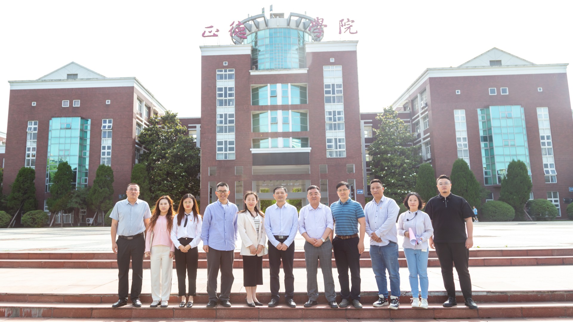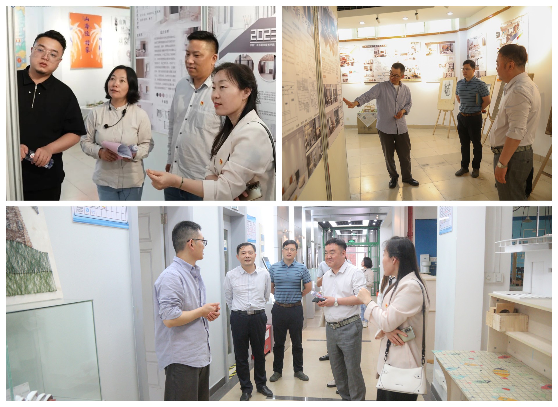 会后,校企双方共同参观了艺术设计与建筑工程系一楼实训工场和毕业设计展,并在创新楼前合影留念。
