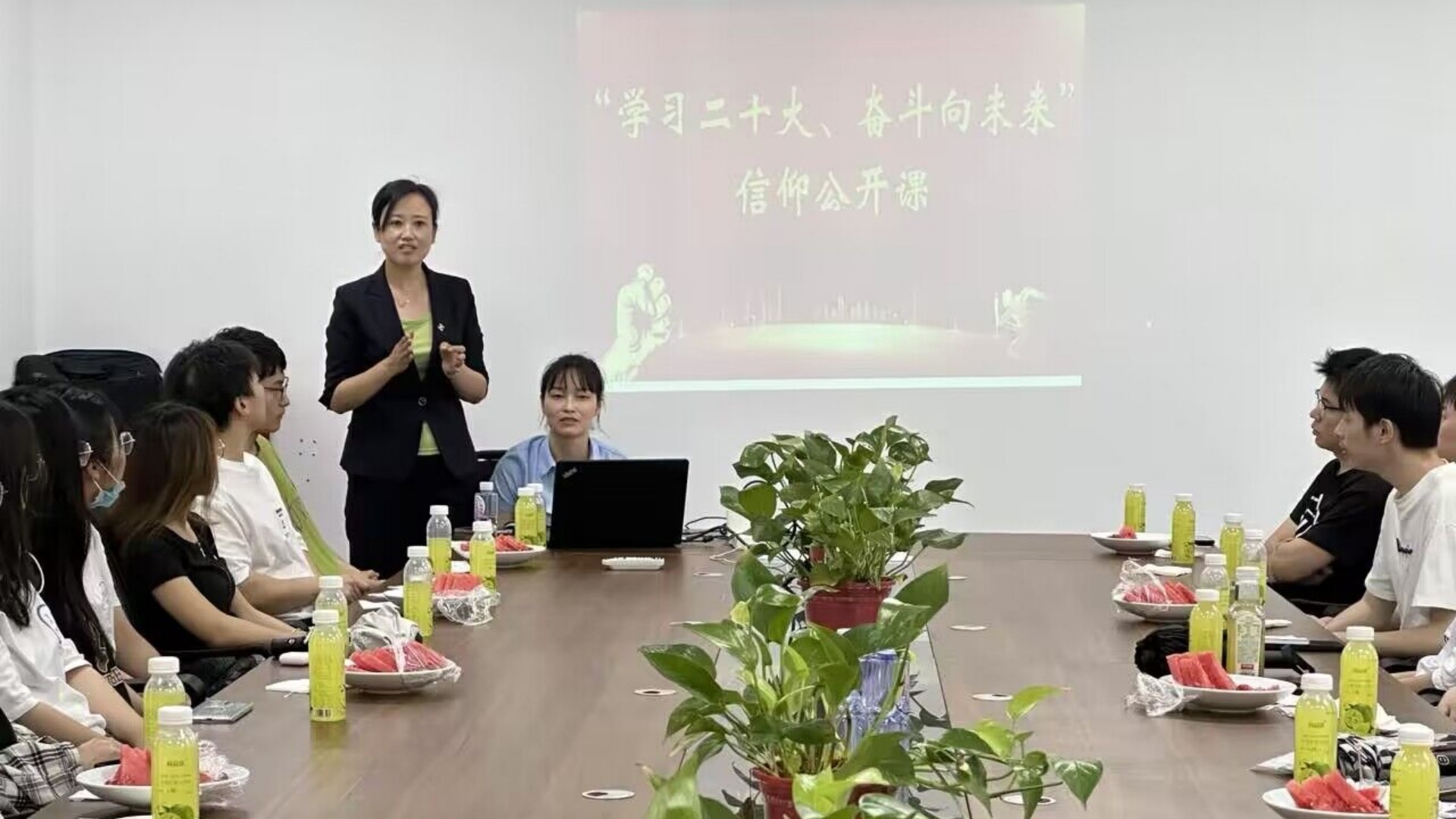 同时,为培养麻豆传媒 职业规划能力和就业意识、帮助麻豆传媒 树立明确目标,蔚蓝集团运营部总监何超为此次同行的30位同学讲授了题为“学习二十大、奋斗向未来”的信仰公开课。何超从“锚定目标、把握机遇、奋斗拼搏、自信自强”四个方面展开。何超向大家分享了个人成长史,勉励大家要在前行中找到自我,在实践中明确目标,在奋斗中获得自信。要珍惜每一次锻炼的机会,在挫折中不断提高技术技能和个人综合素质。他强调,青年要在吃苦中奋斗,在奋斗中成长。青年强,则国家强。当代中国青年生逢其时,施展才干的舞台无比广阔,实现梦想的前景无比光明。新时代的青年要以奋斗为导向,不负时代、不负人民。