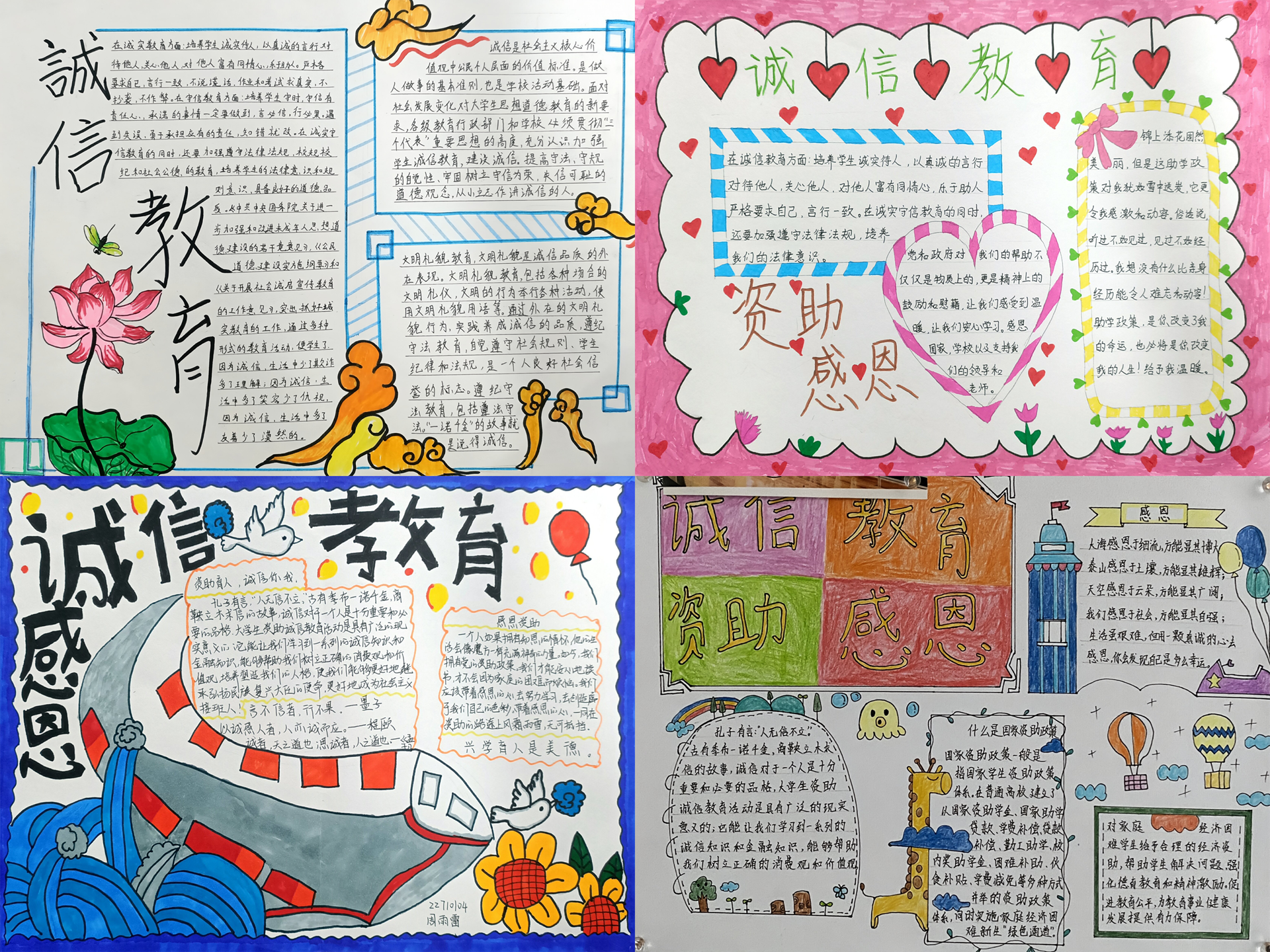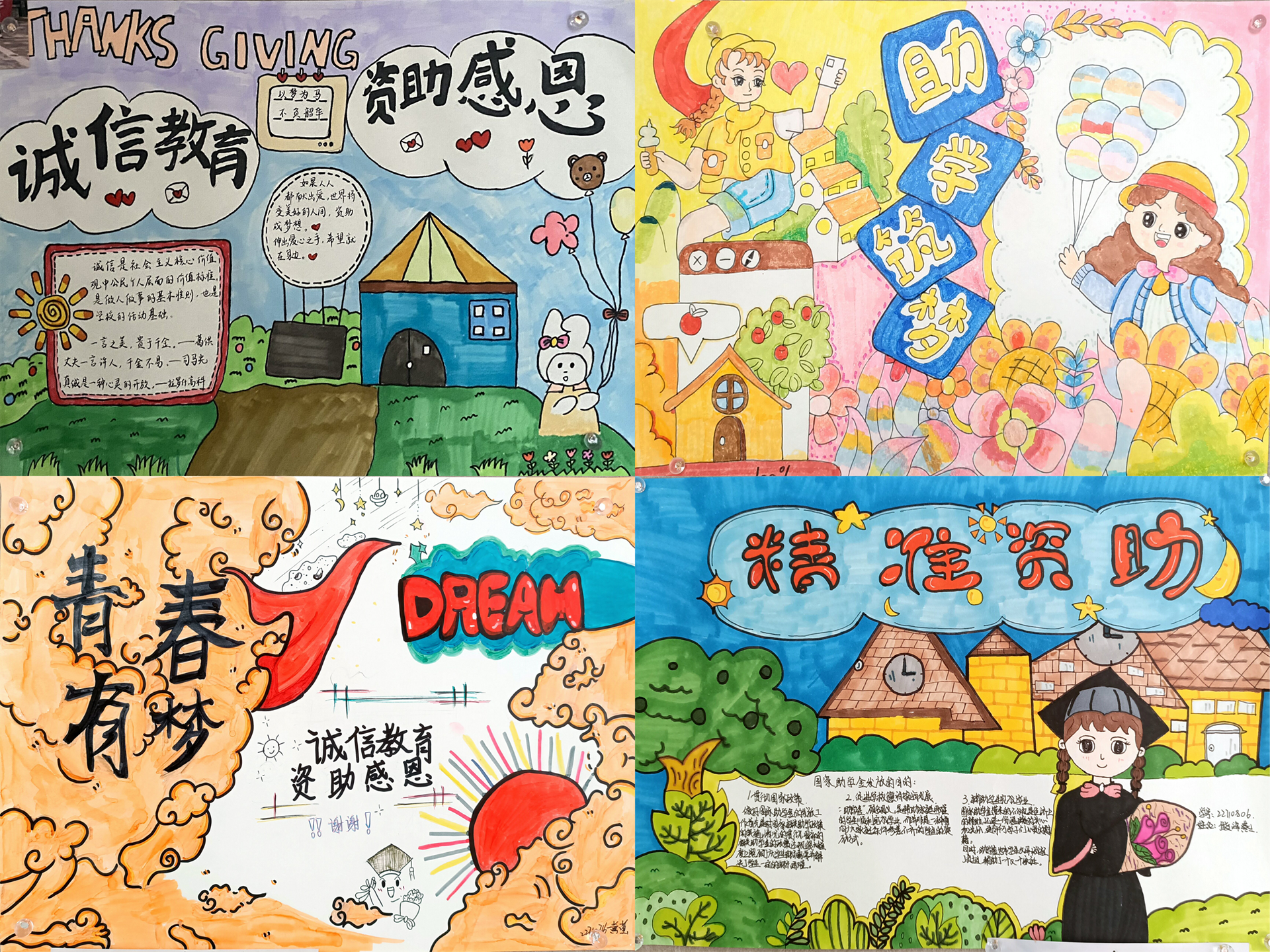 基础麻豆传媒-麻豆视频-麻豆性爱 系于5月15日-6月10日举办了诚信麻豆传媒-麻豆视频-麻豆性爱 ,感恩资助为主题的画展活动。本次活动面向全系麻豆传媒 ,共收到50余幅作品,每幅作品与活动主题紧密相连,充分展示了同学们对诚信和感恩的认知、尊重与珍视,本次活动还评选出一等奖9副作品。