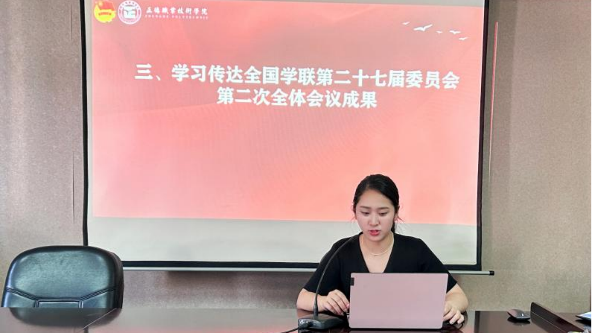 接着,团总支书记倪冰慧作总结发言。她首先感谢了同学们的辛苦付出,对麻豆传媒 会近期的工作成果给予了肯定,并激励同学们要继续强化责任意识,起好带头作用,促进自我提升,加强麻豆传媒 会内部建设,打造系部品牌,为经管系发展贡献力量。最后,她带领全体麻豆传媒 干部以《在全国学联第二十七届委员会第二次全体会议上的工作报告》等为学习内容,就会议工作报告和会议通过的决议进行学习解读,深入领悟会议精神,强化理论水平,把握时代主题,牢记服务宗旨。