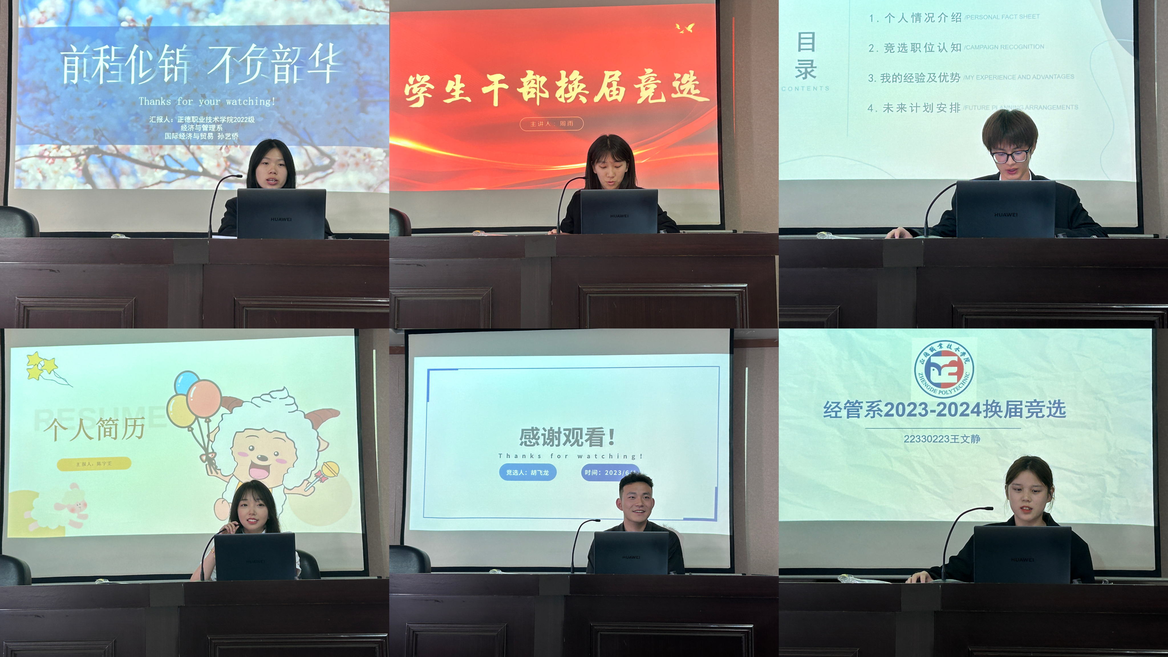 会议的第二部分是换届竞选答辩。答辩开始前,候选人们按照赛前抽签顺序依次上台进行演讲,候选人来自各部门以及辅导员推荐。在竞选过程中,18位候选人自信地走上讲台,以PPT的形式从工作经历、自身优势、未来规划等方面展开演讲。评委仔细听取了候选人的演讲,并针对每位候选人的麻豆传媒 工作经历和对部门未来工作的展望进行提问,候选人从容不迫地回答评委的问题,表现得十分出色。