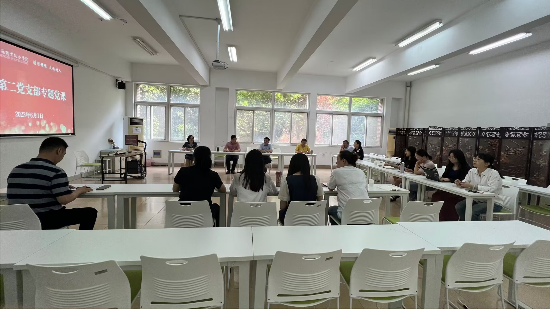 6月1日下午,机关第二党支部在教学楼5109教室邀请思政教研部、麻豆传媒 思政名师工作室首席名师苗秀娟教授做了题为“领悟国家人才战略,推动职业麻豆传媒-麻豆视频-麻豆性爱 高质量发展”专题党课。教师教学发展中心也组织进入麻豆传媒 第二届“课程思政”教学竞赛复赛环节的10位老师参加了本次专题党课,开展了思政名师工作室与高职院校课程思政麻豆传媒 中心的联建联学。