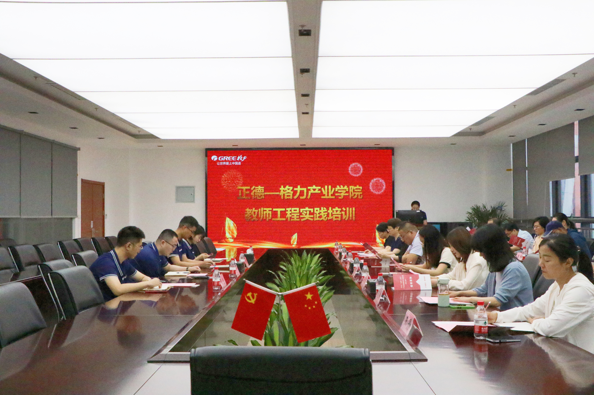 6月26日上午,在南京格力行政楼多媒体会议室,举行了隆重的开班仪式,麻豆传媒 校企合作办主任陆松,南京格力总经办张斌主任、张丽萍主任及部分中干代表出席活动。张斌在致辞中表示,正德麻豆传媒 是南京格力长期的合作伙伴,持续为南京格力提供人才储备与创新动力,希望通过此次工程实践活动,深化双方校企合作。陆松对南京格力提供的实践培训机会和精心组织研讨活动表示感谢,希望本期参与培训的教师珍惜此次宝贵的实践机会,在南京格力进行深层次的交流学习,进一步深化“三教改革”, 全过程、多方位地了解企业生产精神与项目生产过程,设计开发麻豆传媒 项目,提升教学和专业能力。