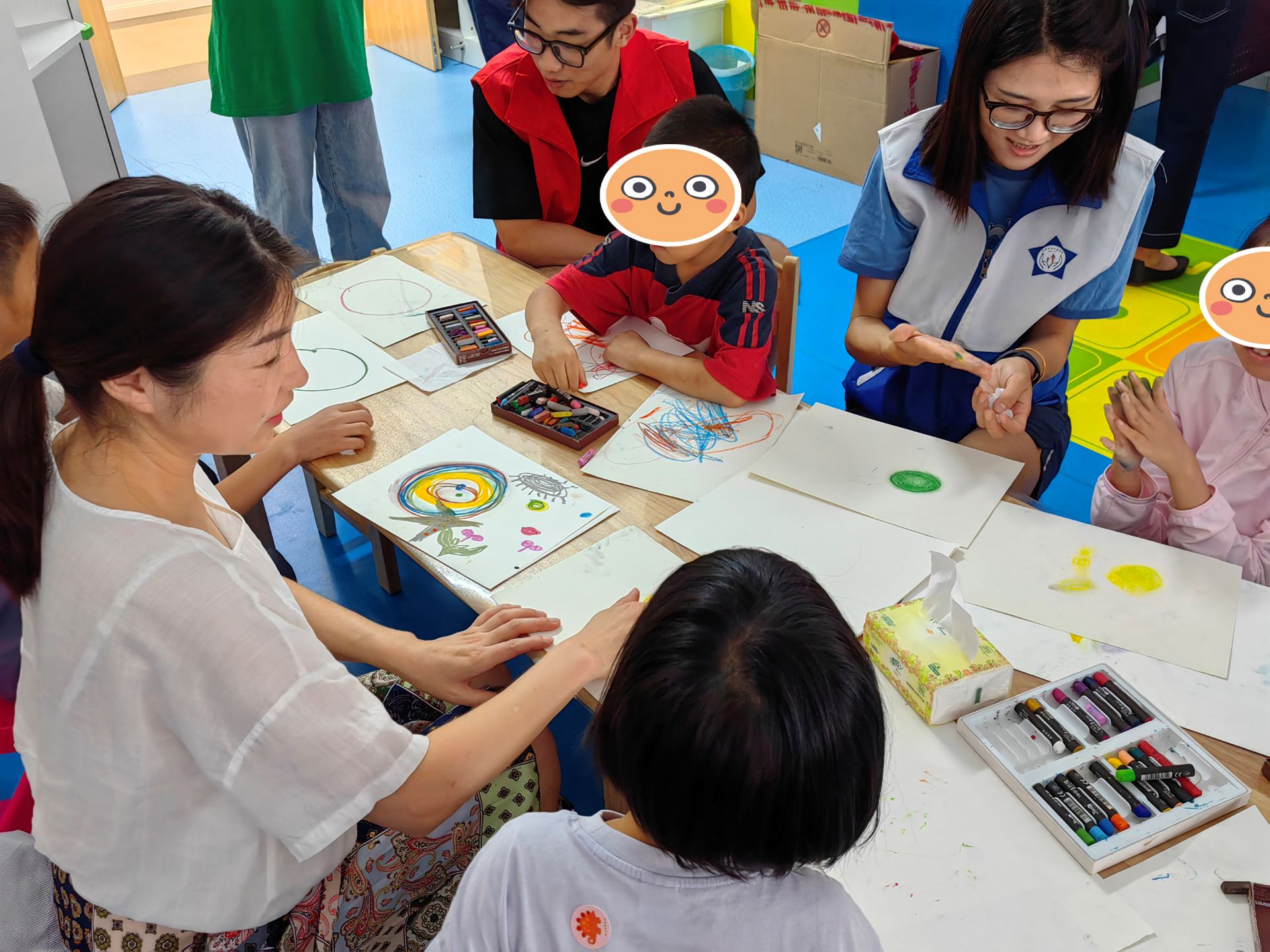 艺术设计与建筑工程系党支部组织四位优秀教师徐嘉嘉、周倩、刘凤、沈剑前往江宁区海之星儿童康复中心,与南医大老师们一起讨论、策划、实地考察,为绘画活动制定了详细的内容与流程。2023年8月24日,“‘艺’ 颗红星——关爱孤独症儿童公益活动”终于正式拉开帷幕。