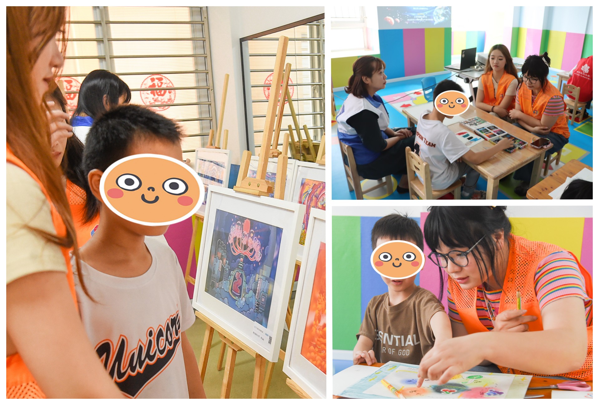 师生志愿者们的帮助下,孩子们尝试用色粉、彩铅、油画棒涂抹着自己心中的宇宙,稚嫩的笔触和绚烂的色彩形成了一幅幅独具想象力和艺术审美的作品,展示了星孩们无以言表但丰富多彩的内心世界。
