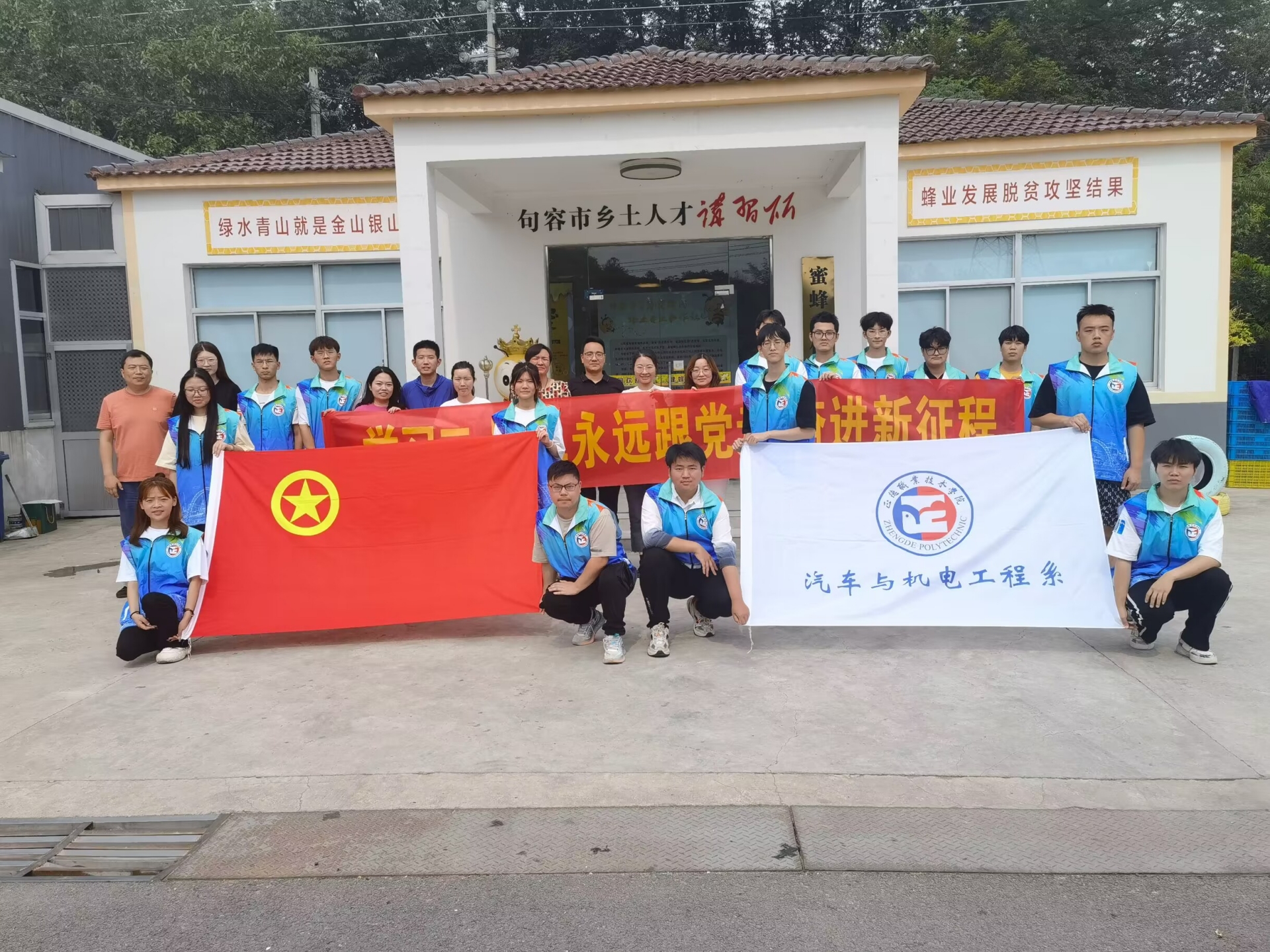 为深学笃用习近平新时代中国特色社会主义思想,打造美丽乡村,发展绿色经济,促进乡村产业振兴,引导和帮助广大青年麻豆传媒 在社会实践中“受麻豆传媒-麻豆视频-麻豆性爱 、长才干、做贡献”。7月10日,汽车与机电工程系暑期社会实践团队15名成员在系主任任丽君、党支部书记朱翔、团总支书记李浩文、21、22级全体辅导员的带领下前往镇江句容蜀镇空青村,走访了健蜂园蜂业合作社,探索“乡村振兴与生态经济”的发展模式。