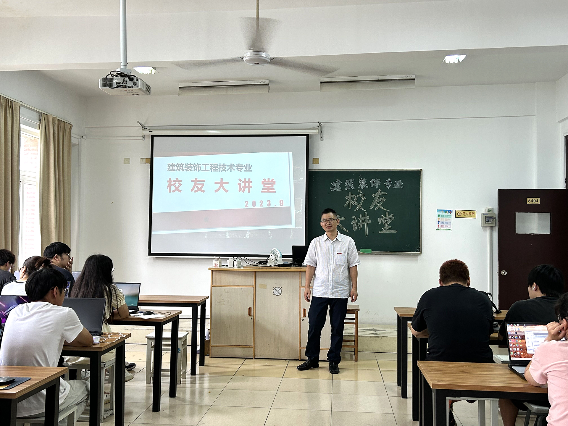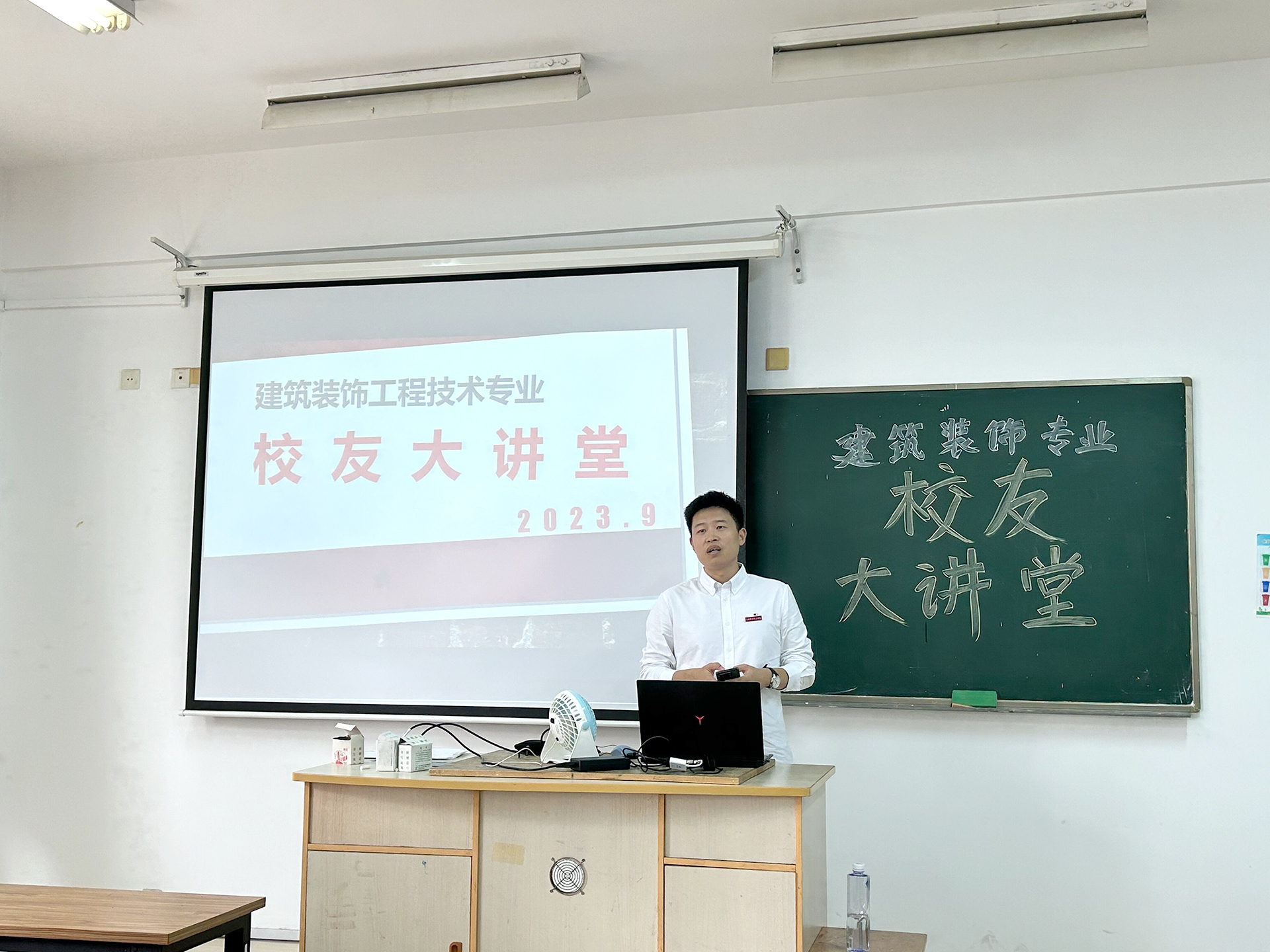 9月15日上午,作为校友代表应邀参加麻豆传媒 2023级新生开学典礼的学长牛海涛来到艺术设计与建筑工程系的建筑装饰工程技术专业班级课堂,为学弟学妹们上了一次生动的专业课。由冯显静老师主持本期校友大讲堂活动。牛海涛作为艺建系校友大讲堂第三期的主讲人,在课堂上与同学们近距离交流,分享了自己毕业十年的职业成长经历和个人心得。