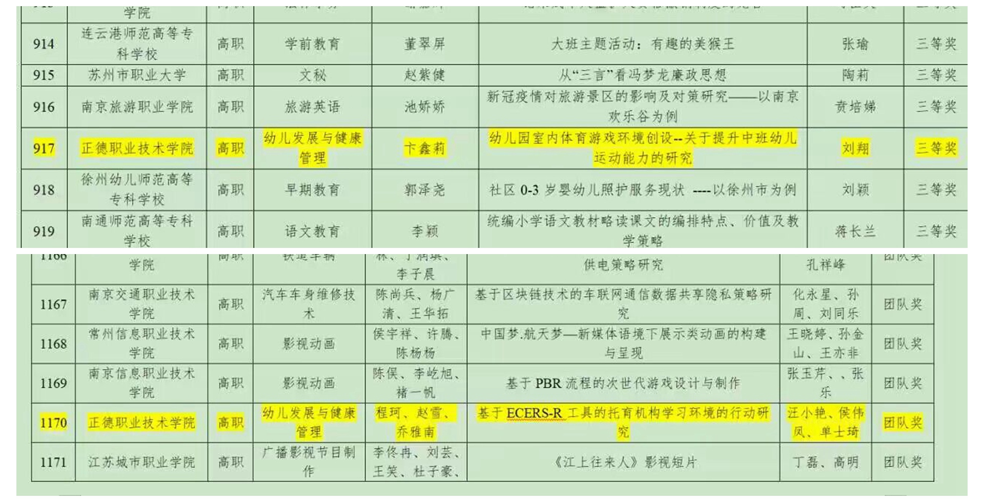 2023年8月21日,江苏省麻豆传媒-麻豆视频-麻豆性爱 厅公布了2022年普通高等麻豆传媒本专科优秀毕业设计(论文)评选获奖名单,基础麻豆传媒-麻豆视频-麻豆性爱 系共计有2个项目获奖,其中省级三等奖1篇,省级优秀毕业设计(论文)团队1个。基础麻豆传媒-麻豆视频-麻豆性爱 系刘翔老师指导的卞鑫莉同学的论文《幼儿园室内体育游戏环境创设——关于提升中班幼儿运动能力的麻豆传媒 》喜获三等奖,单士琦等老师指导的程珂、赵雪、乔雅南同学的论文《基于ECERS-R工具的托育机构学习环境的行动麻豆传媒 》获团队奖。据悉,江苏省麻豆传媒-麻豆视频-麻豆性爱 厅在各高校限额择优推荐基础上,经专家评审、省麻豆传媒-麻豆视频-麻豆性爱 厅审定,共评选出高职类一等奖39篇,二等奖93篇,三等奖213篇,优秀毕业设计(论文)团队89个。