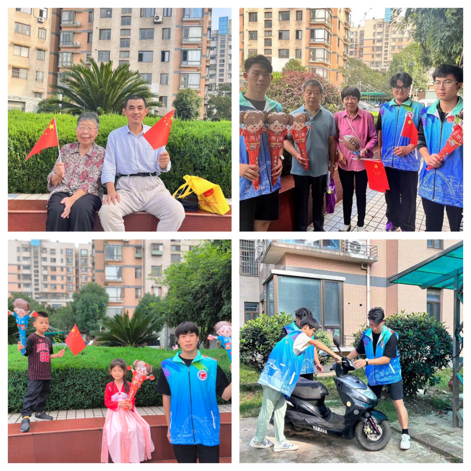 在晚会筹备过程中,汽车与机电工程系大麻豆传媒 志愿者团队充分发挥专业知识和技能,与社区工作人员一起组织、宣传了此次活动。除此之外志愿者们开展扶车清扫活动,营造整洁舒适的社区环境。通过制作宣传红旗、发放国庆元素礼品等形式向社区居民介绍中秋和国庆的由来及习俗,吸引了大批居民积极参与。