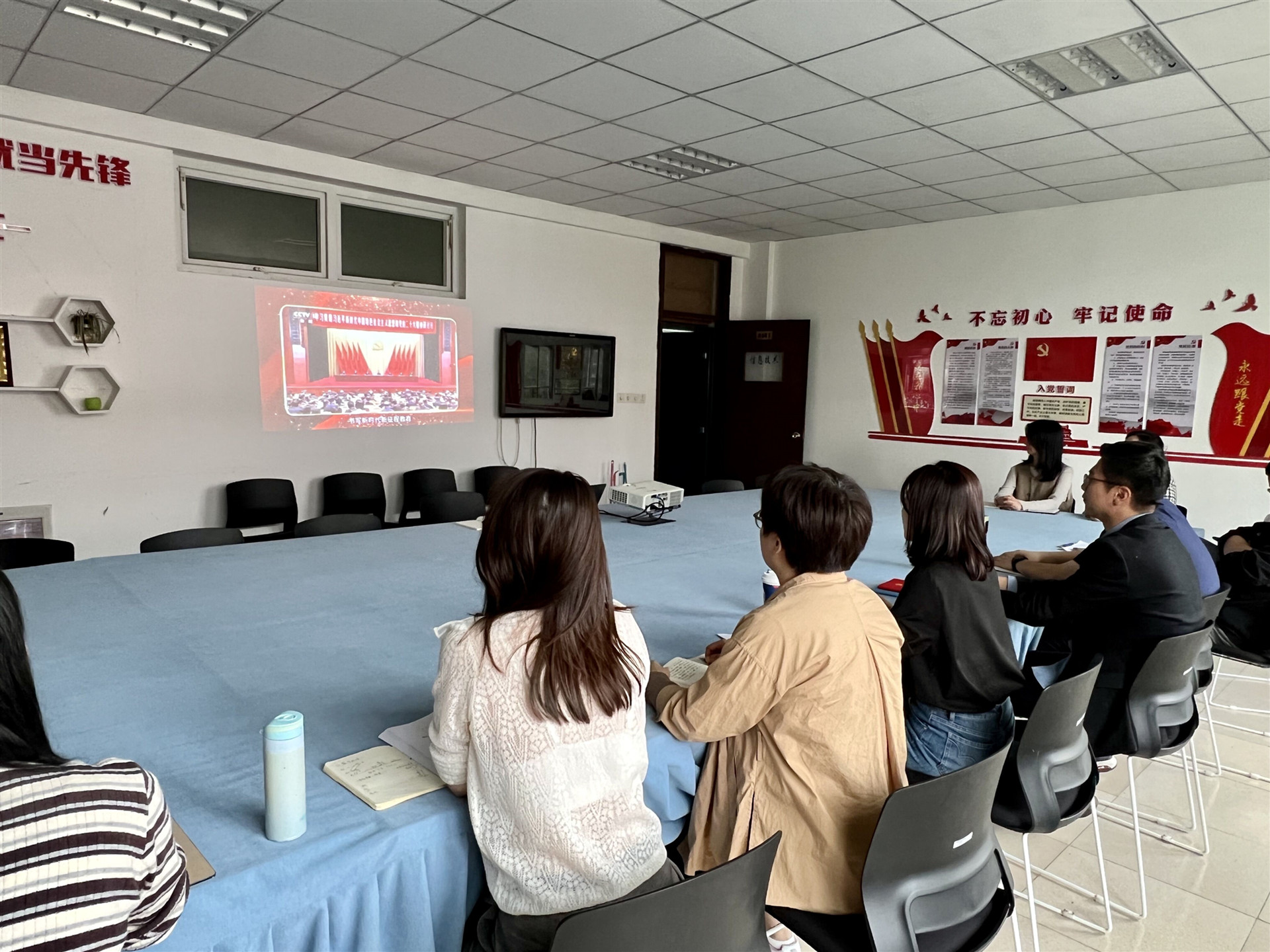 随后,支部全体党员教师集中观看“铸魂增智育新人 正风促干书新篇”2023年高校党组织示范微党课展播。支部党员教师纷纷表示,要牢记习近平总书记殷切嘱托,认真学习贯彻习近平新时代中国特色社会主义思想,以实际行动和昂扬奋进的精神姿态,在教书育人中践行初心使命。