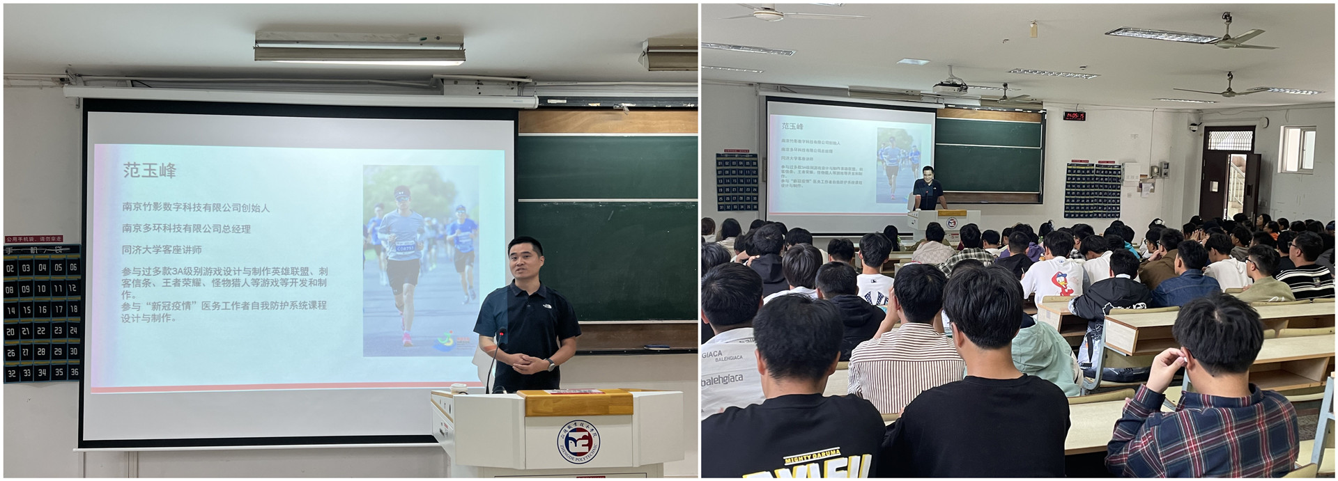 范玉峰,曾参与英雄联盟、古墓丽影、合金弹头、NBA2K、塞尔达、地平线等游戏等设计和制作以及“新冠疫情”医务工作者自我防护系统课程的开发,并受邀担任同济大学客座讲师。讲座中,范玉峰展示了英雄联盟与古墓丽影等游戏的仿真模型动画,在游戏展示的快乐氛围中,他结合“人工智能工程师”“云计算工程师”“数据分析师”等软件人才方向,将同学们的职业目标拆分成5段小目标,引导麻豆传媒 在行业中探索出适合自己的岗位和专业技能提升方向。