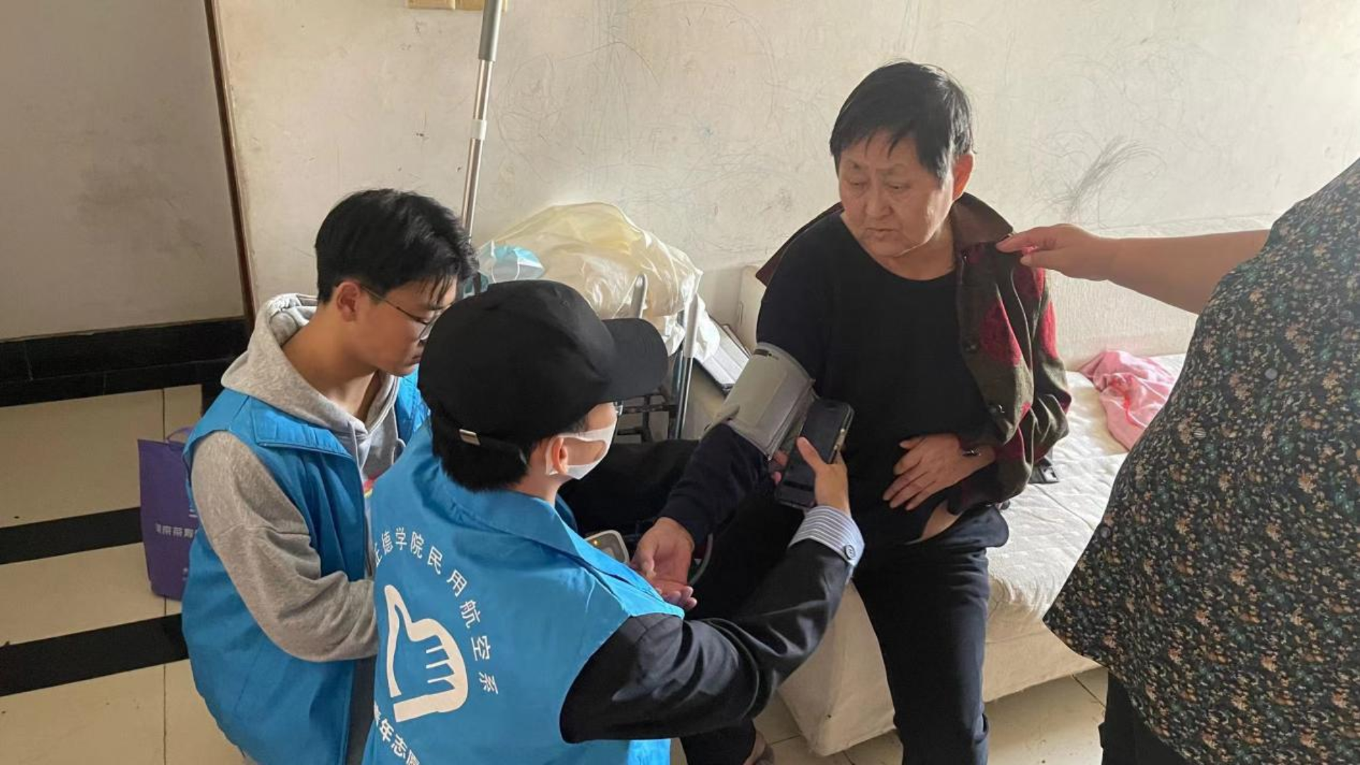 积极应对人口老龄化,事关国家发展和民生福祉,是实现经济高质量发展、维护国家安全和社会稳定的重要举措。党的二十大报告中提出:“实施积极应对人口老龄化国家战略,发展养老事业和养老产业,优化孤寡老人服务,推动实现全体老年人享有基本养老服务。”为进一步贯彻党的二十大精神,传承中华民族孝老爱亲的传统美德,营造尊老、敬老、爱老、助老的社会氛围,10月17日,民用航空系组织青年志愿者为社区老人开展测量血压服务。