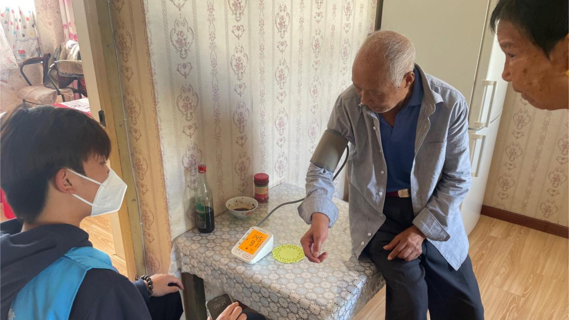 志愿者们帮助社区老人测量血压的同时,也会通过聊天了解老人的生活情况和身体状况,叮嘱老人秋季早晚温差大,要适时添衣防感冒。居民高奶奶说:“看到这群孩子让我倍感欣慰,也很感动。”